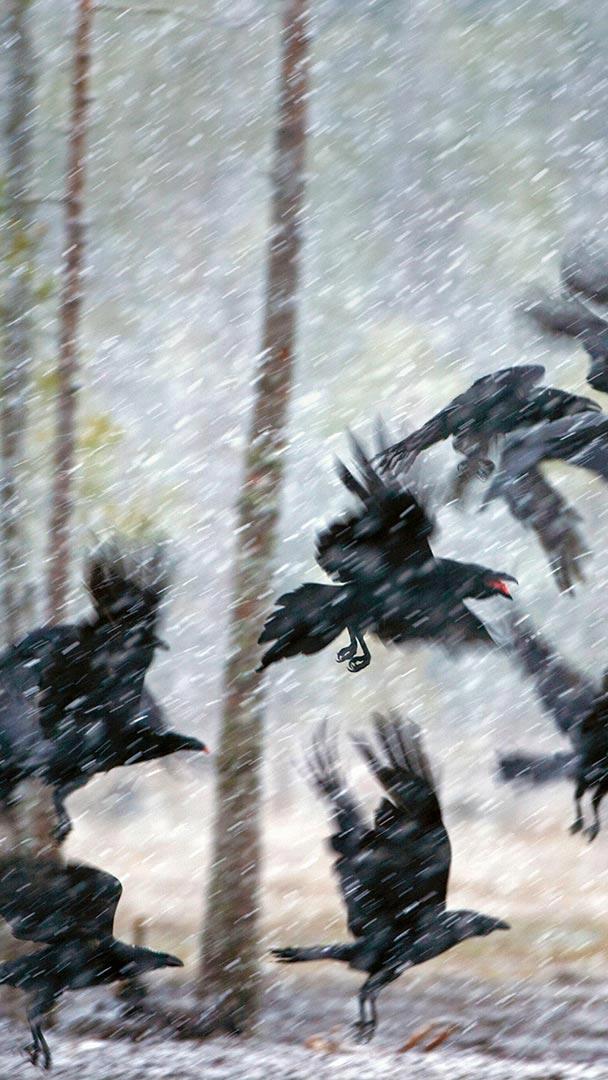 库赫莫附近暴风雪中的乌鸦,芬兰