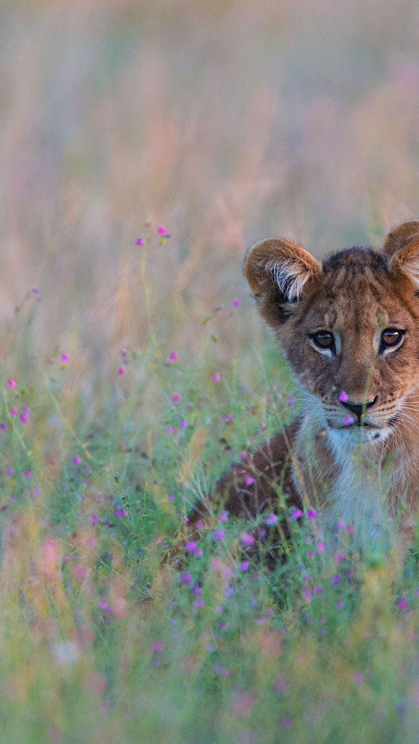 藏在高高的草丛中的狮子幼崽,博茨瓦纳卡拉哈里沙漠