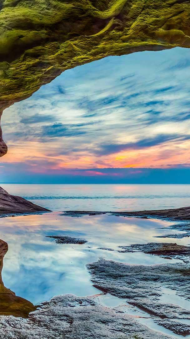 彩岩国家湖滨区的岩洞,密歇根