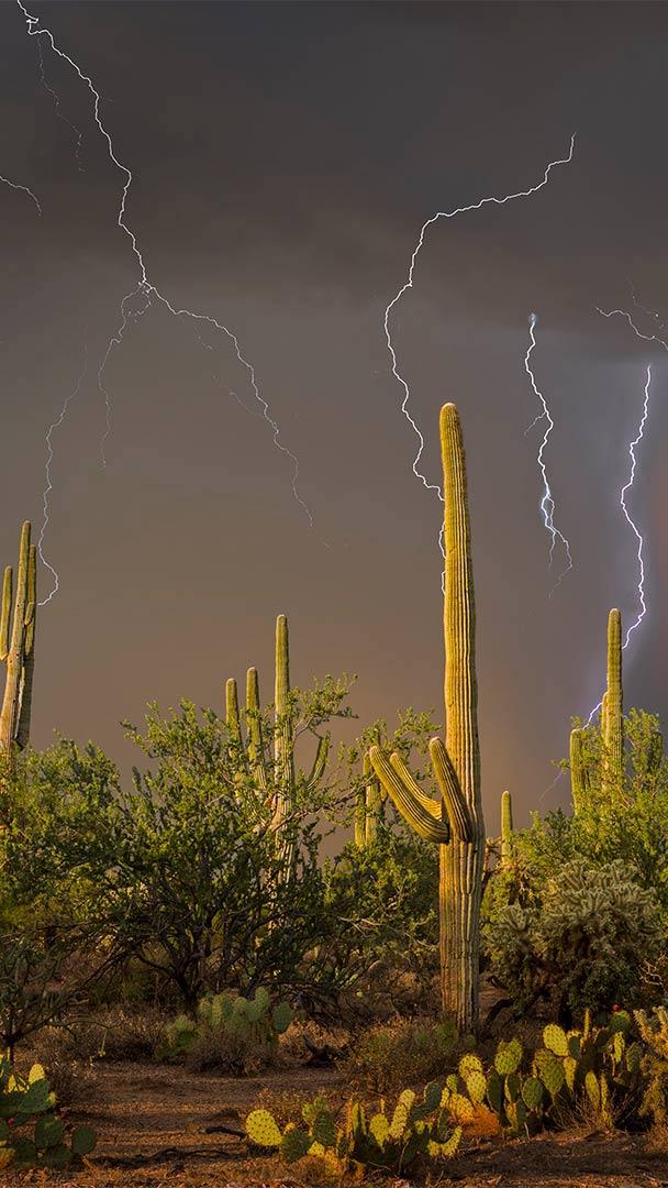图森北部托托利塔山麓上空的雷暴,亚利桑那州索诺拉沙漠