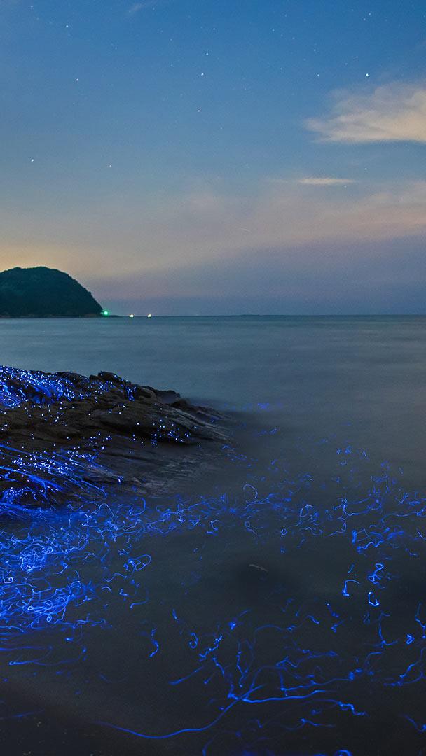 冈山沿岸的发光海洋萤火虫,日本
