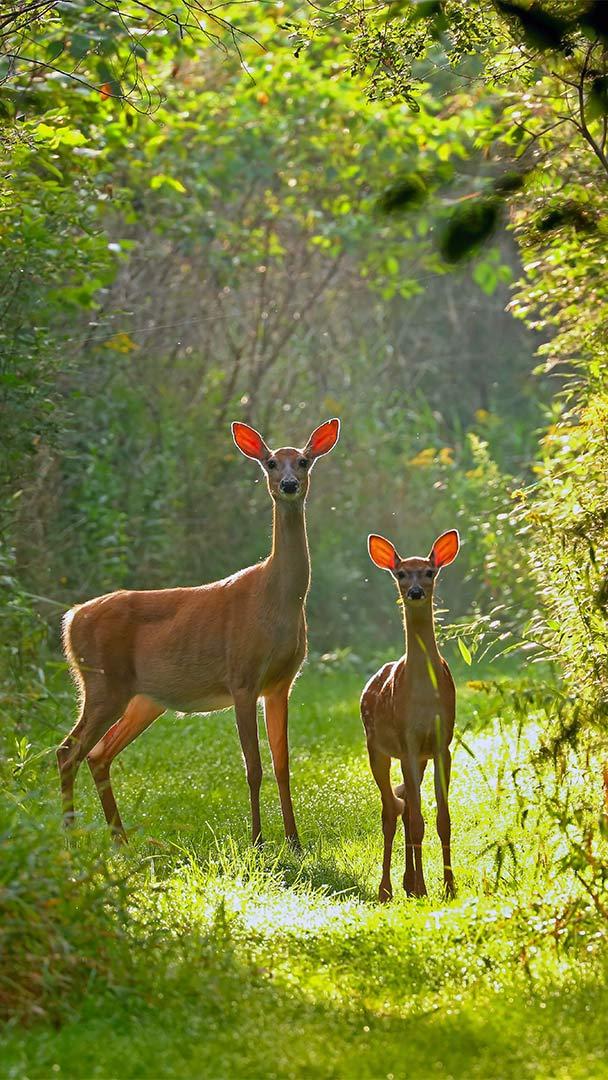 威斯康星州的白尾母鹿和小鹿