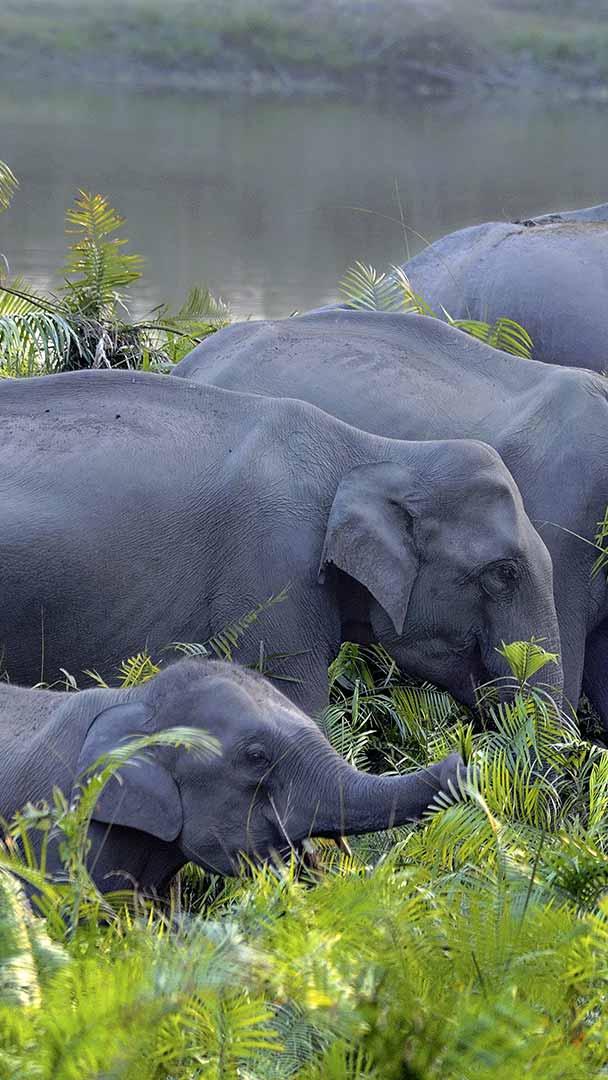 卡齐兰加国家公园的亚洲象群,印度阿萨姆邦