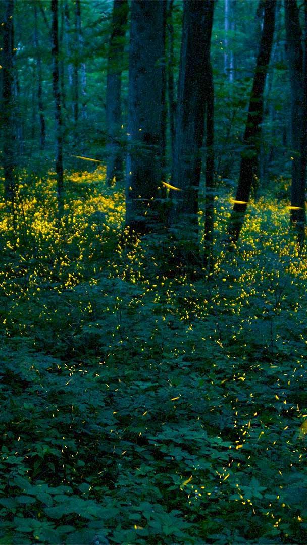 同步发光萤火虫照亮了大烟山国家公园中的森林