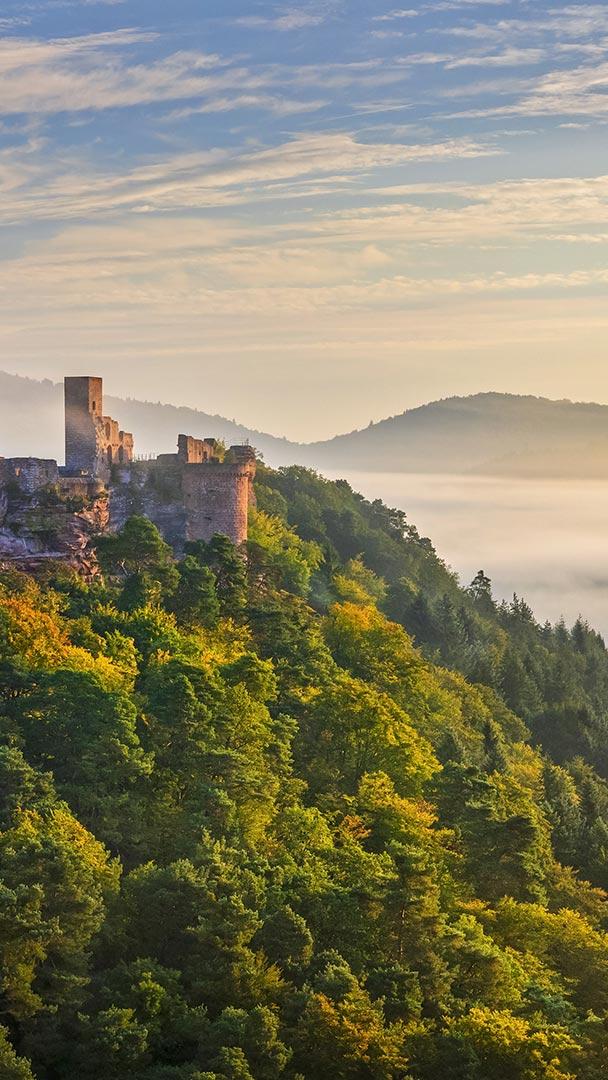 达恩附近普法尔茨森林中的Altdahn城堡,德国莱茵兰-普法尔茨Dahn Rockland, Palatinate Forest, Rhineland-Palatinate, Germany