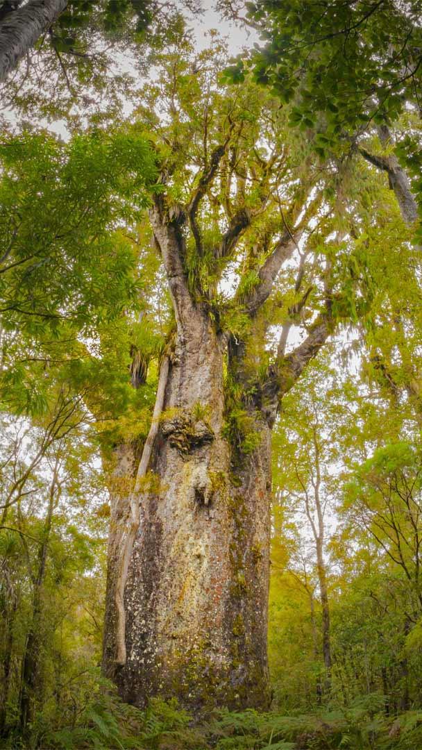 怀波瓦森林中一棵名为Te Matua Ngahere的巨型贝壳杉树 ,新西兰北地