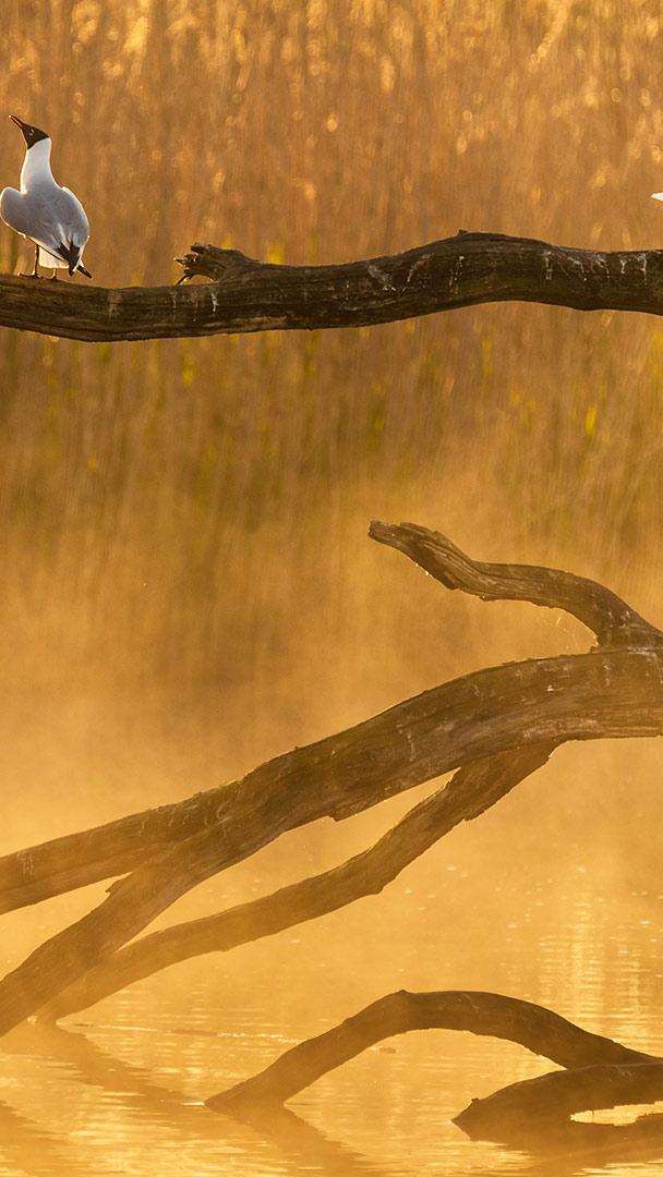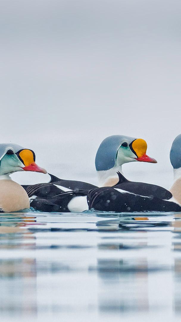 正在游水的雄性王绒鸭,挪威特罗姆斯-芬马克郡