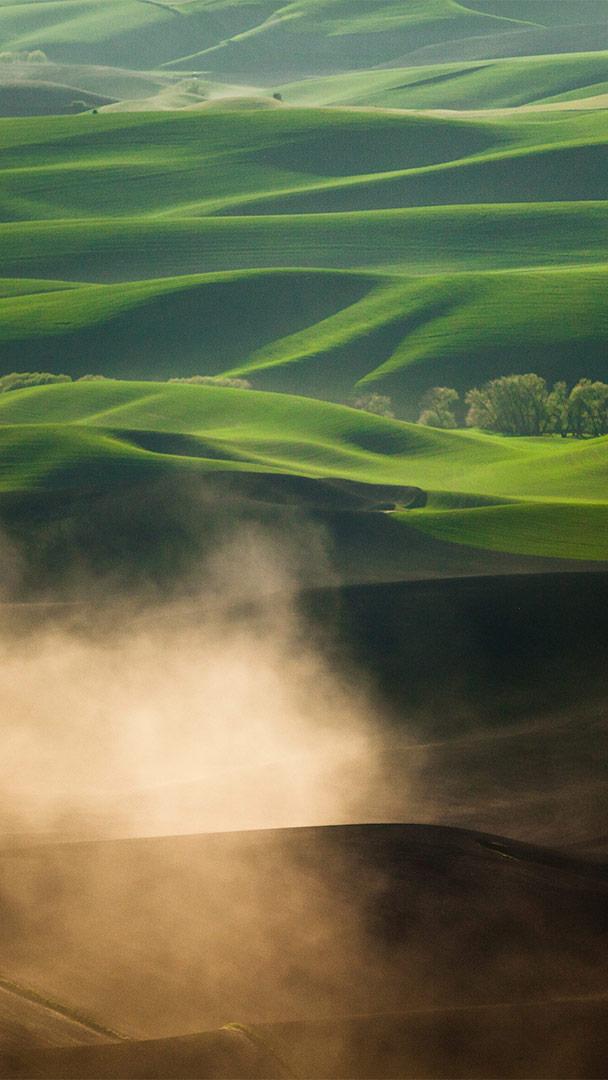 普尔曼附近的帕卢斯一辆拖拉机在耕作时扬起尘土,华盛顿州