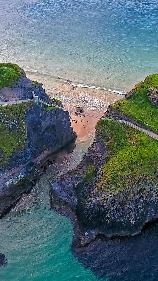 连接巴林托伊附近两处悬崖的Carrick-a-Rede索桥,北爱尔兰安特里姆