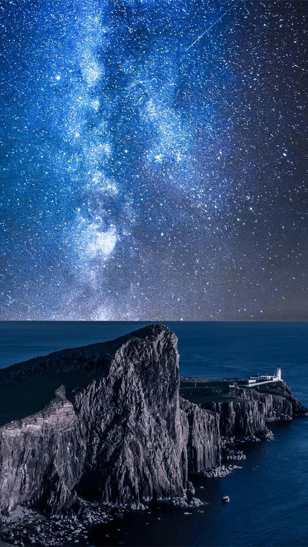 内斯特角灯塔上空的银河 ,苏格兰斯凯岛