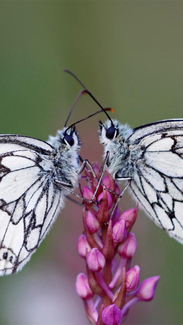 一对加勒白眼蝶落在花上,法国阿尔萨斯