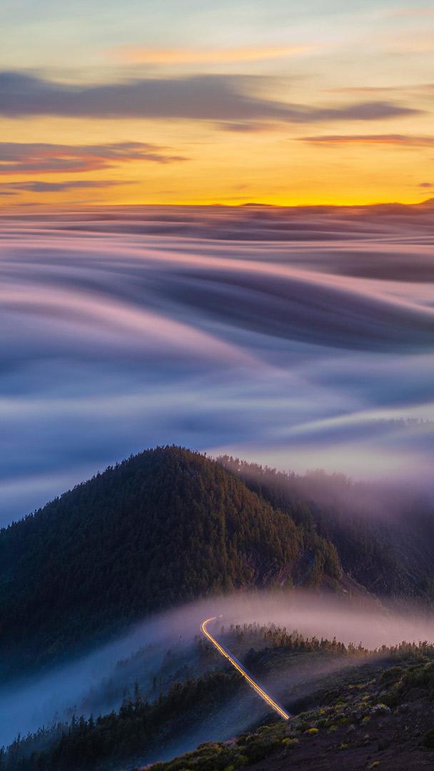 大西洋和特内里费山脉上空的流云,西班牙加那利群岛