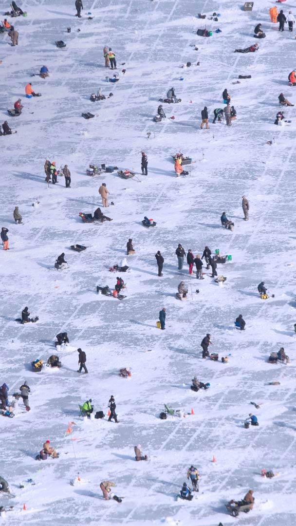 人们在布雷纳德的加尔湖上冰钓,明尼苏达州