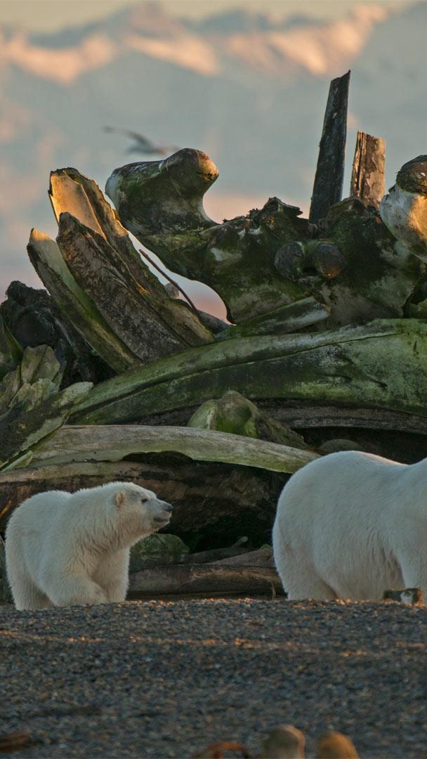 北极国家野生动物保护区里的一只雌性北极熊和她的幼崽,阿拉斯加
