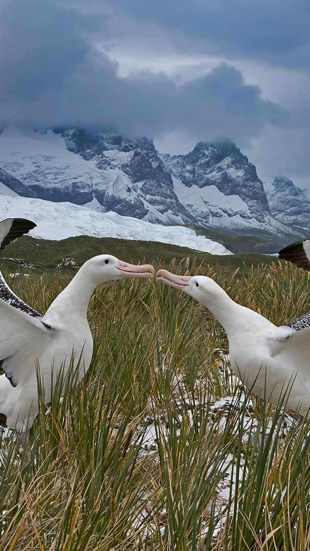 一对闲庭信步的信天翁,南乔治亚岛
