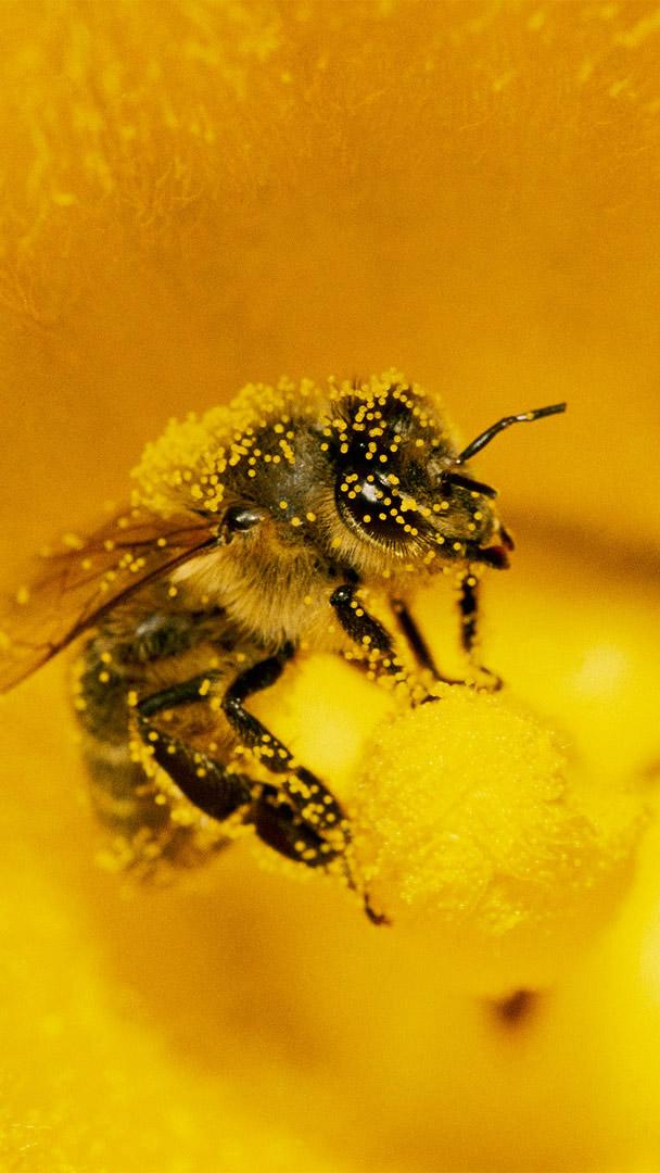 一只身上粘满南瓜花粉的蜜蜂,德国