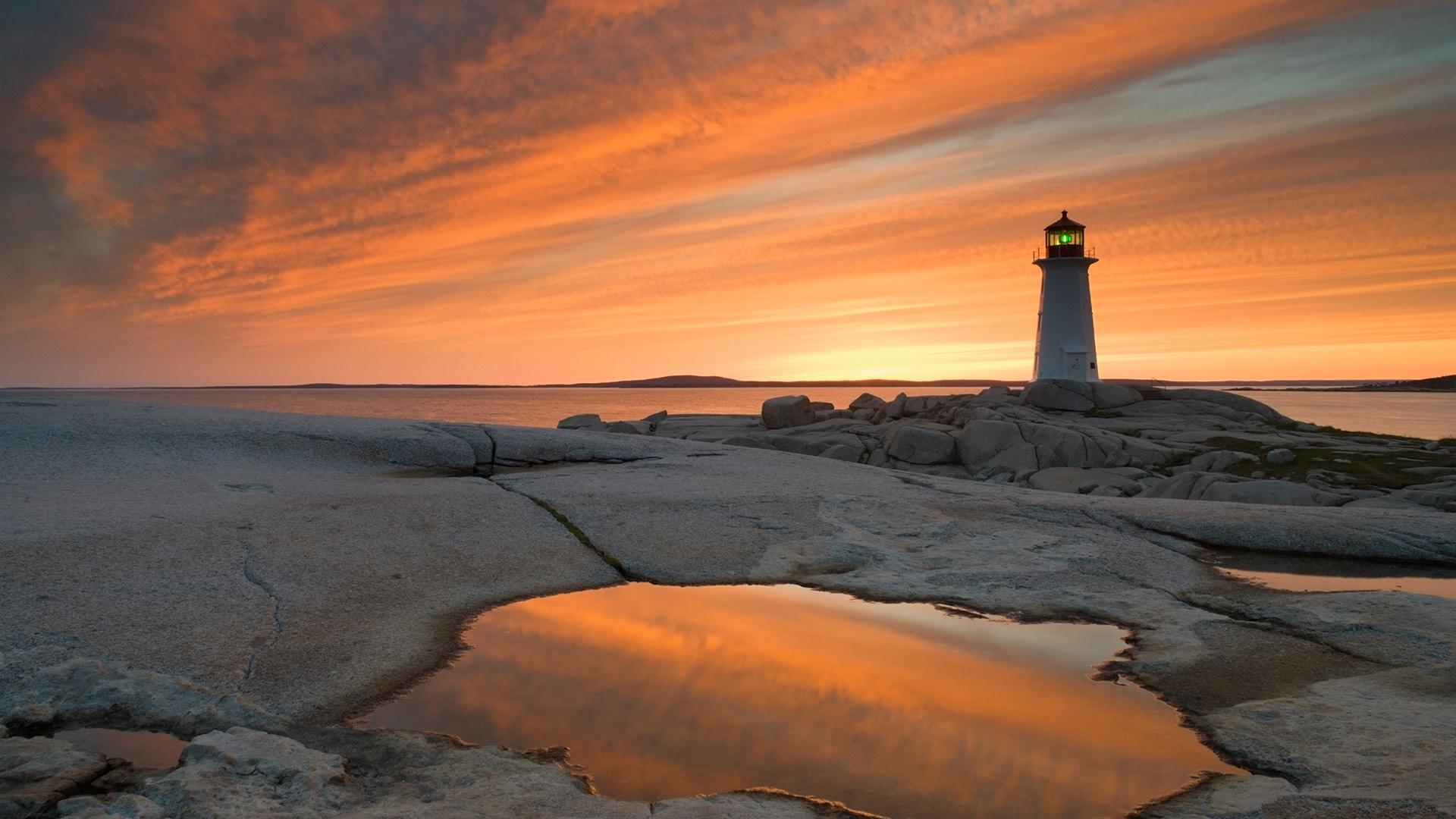 黄昏时佩吉海湾的灯塔,加拿大新斯科舍省