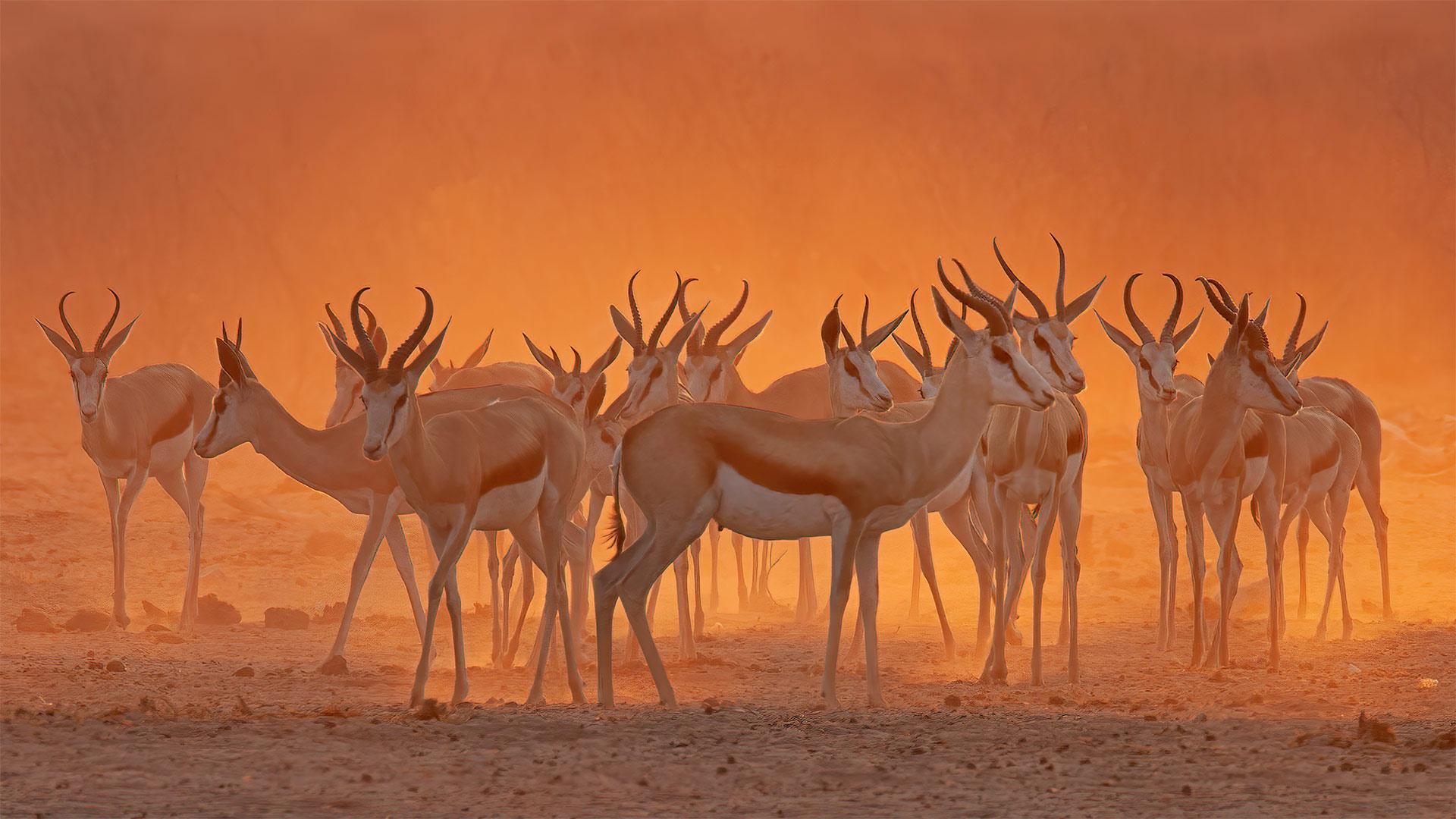 埃托沙国家公园内一处水坑附近的跳羚,纳米比亚