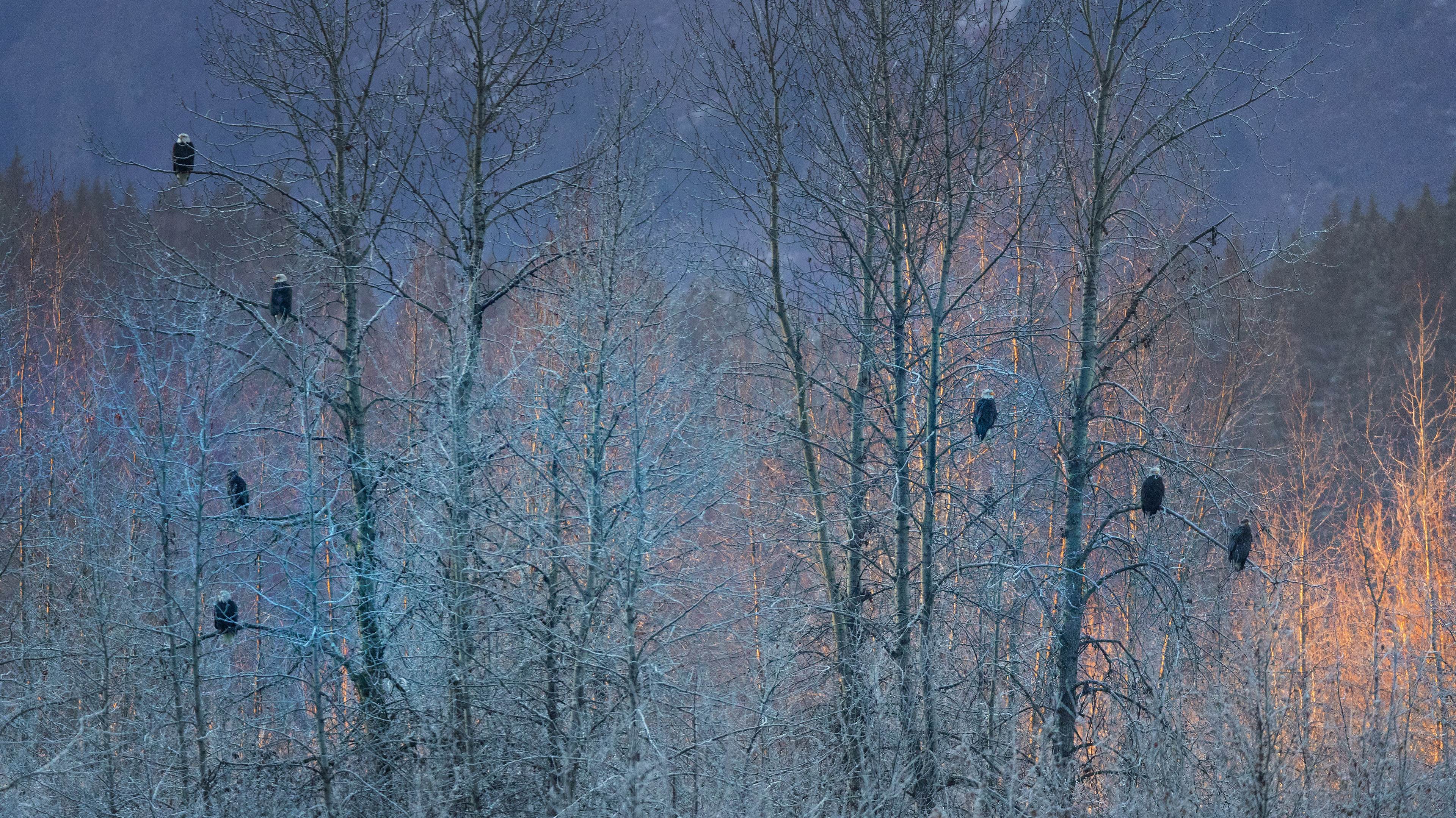 每年11月,多达4000只秃鹰会聚集在阿拉斯加海恩斯附近的奇尔卡特河上,捕食在河边产卵后不久就死亡的鲑鱼。对于鸟类来说这是一场盛宴,美味的鲑鱼源源不断。而对于观鸟者来说,这也是一场视觉盛宴。届时,这里还会举办阿拉斯加秃鹰节,包含猛禽展示、猛禽科普、徒步和现场音乐会等活动。