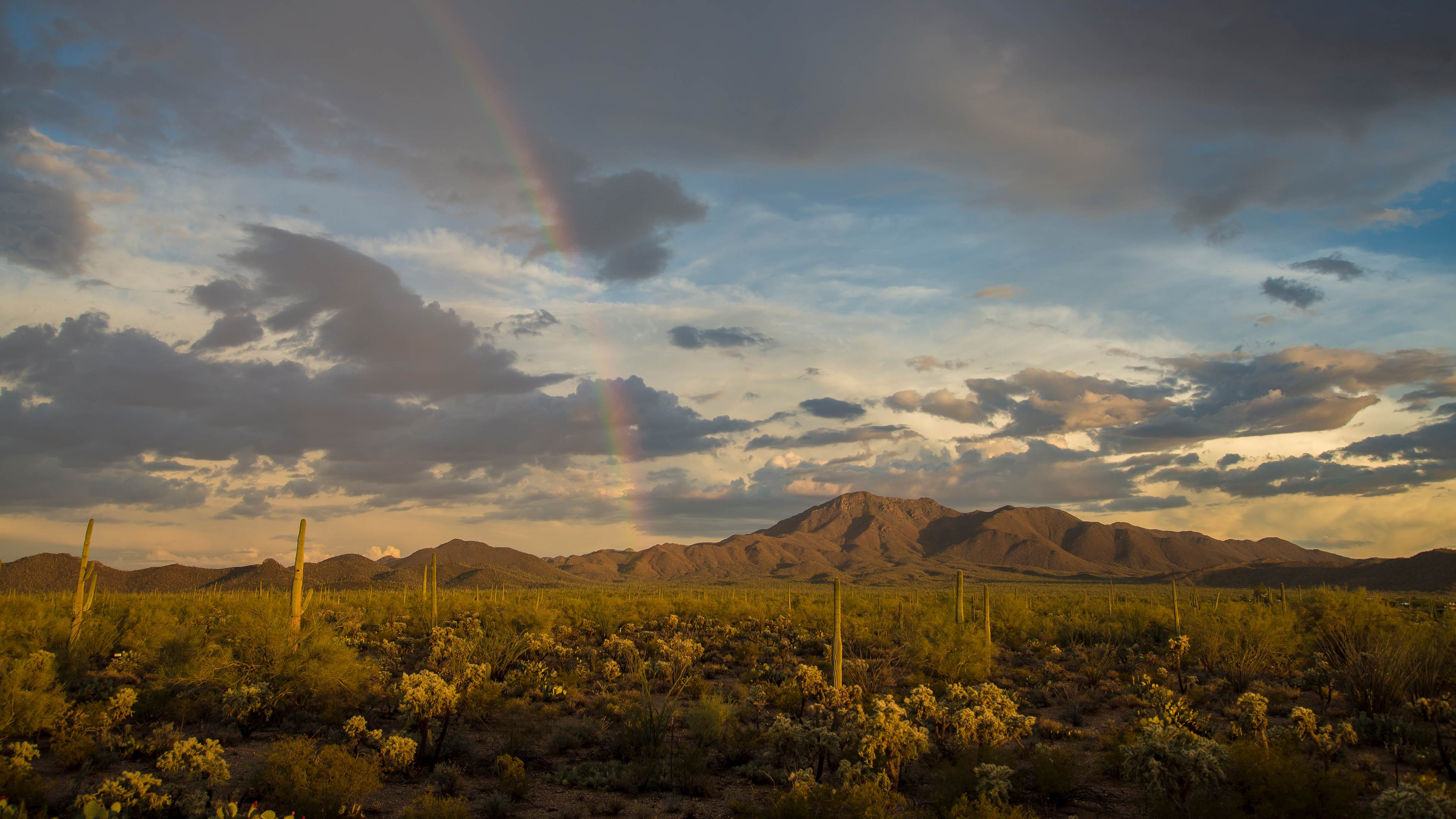 Regenbogen über dem Wasson Peak, Saguaro-Nationalpark, Arizona, USA © Frank Staub/Getty Images Farben der Freude Regenbogen über dem Wasson Peak, Saguaro-Nationalpark, Arizona, USA