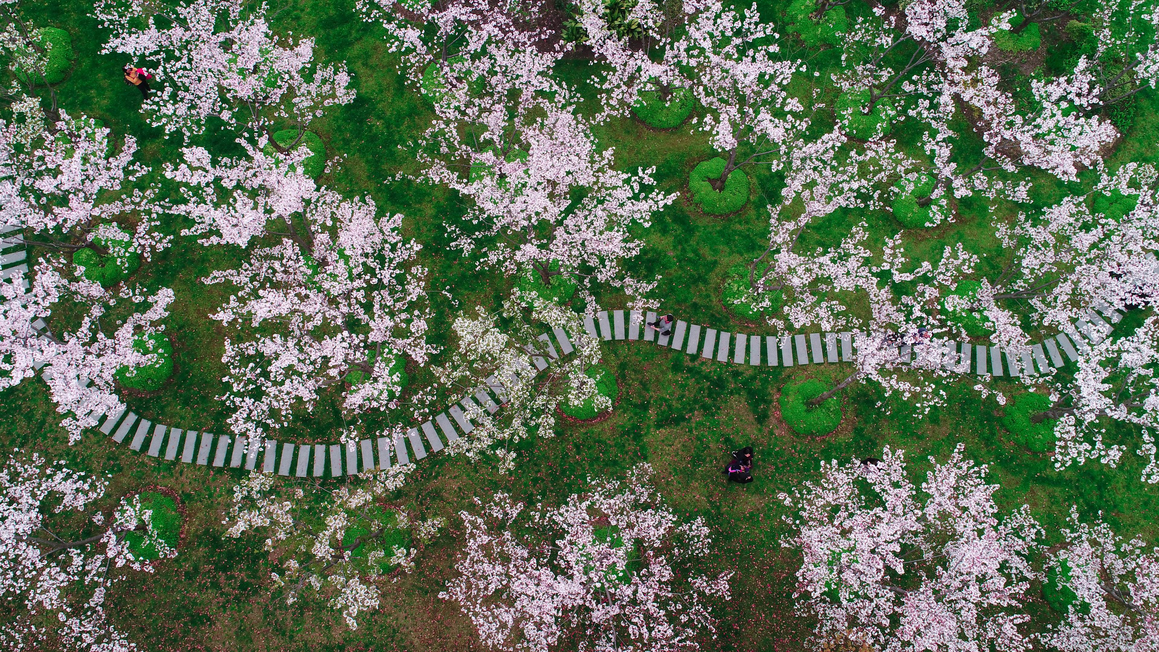 Kirschblüten in Shanghai, China © Yaorusheng/Getty Images Der Weg der Blütenblätter Kirschblüten in Shanghai, China