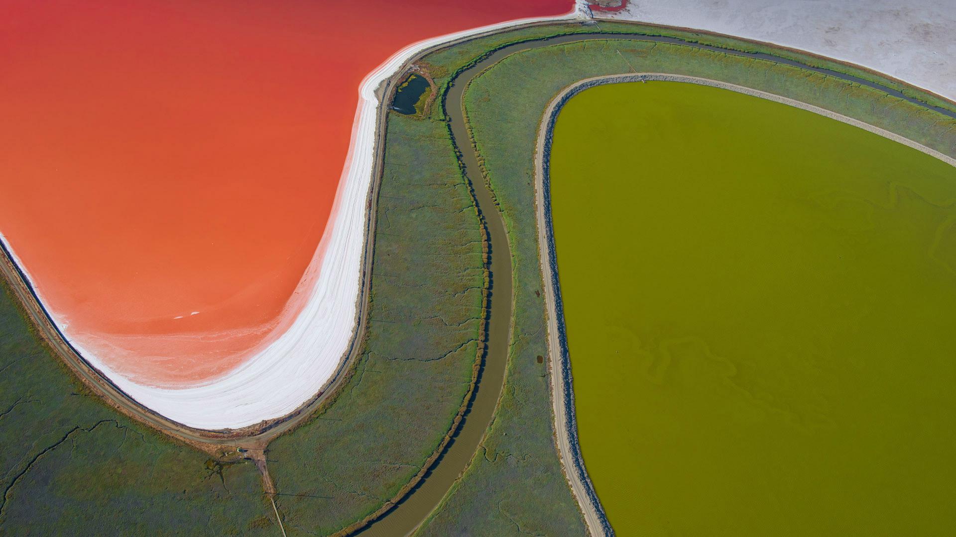 旧金山湾的盐蒸发池,美国加利福尼亚州 © Jason Hawkes/REX/Shutterstock 蒸发结晶 永不止息 沿着旧金山湾的南部海岸,有几英亩的浅水区,这里与海湾的其它部分是隔绝的。这些池子里的水被蒸发掉,留下的盐会被收获并加工出售。蒸发池有着不同的颜色,这是因为不同的微生物在高盐度的水中茁壮成长造成你所看见的这些奇妙颜色。 美国 海岸 加利福尼亚州 这些 英亩 海湾 颜色 旧金山 不同 其它 茁壮成长 奇妙 水中 沿着 浅水区