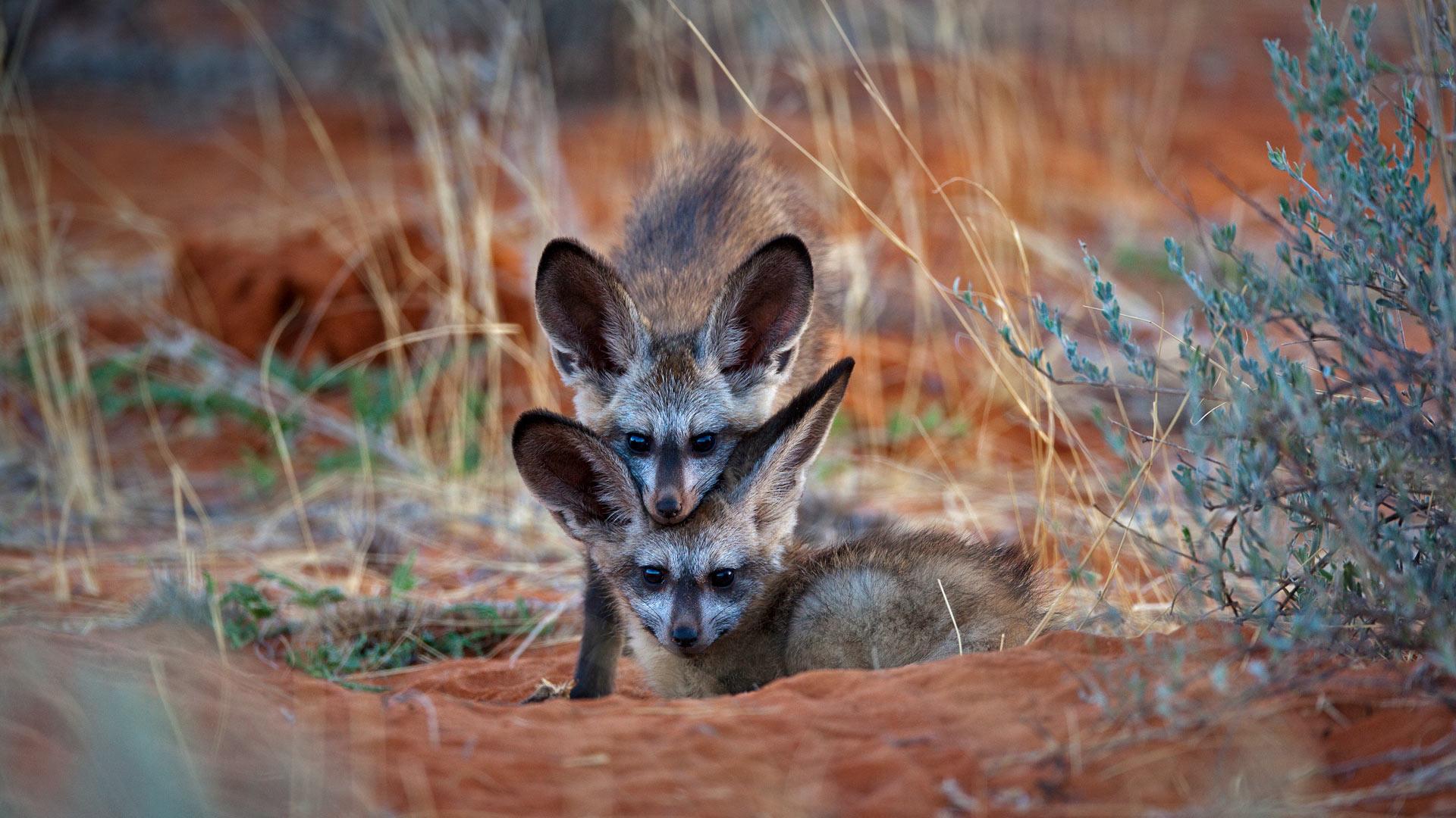 卡格拉格帝跨境公园内的两只大耳狐,博茨瓦纳