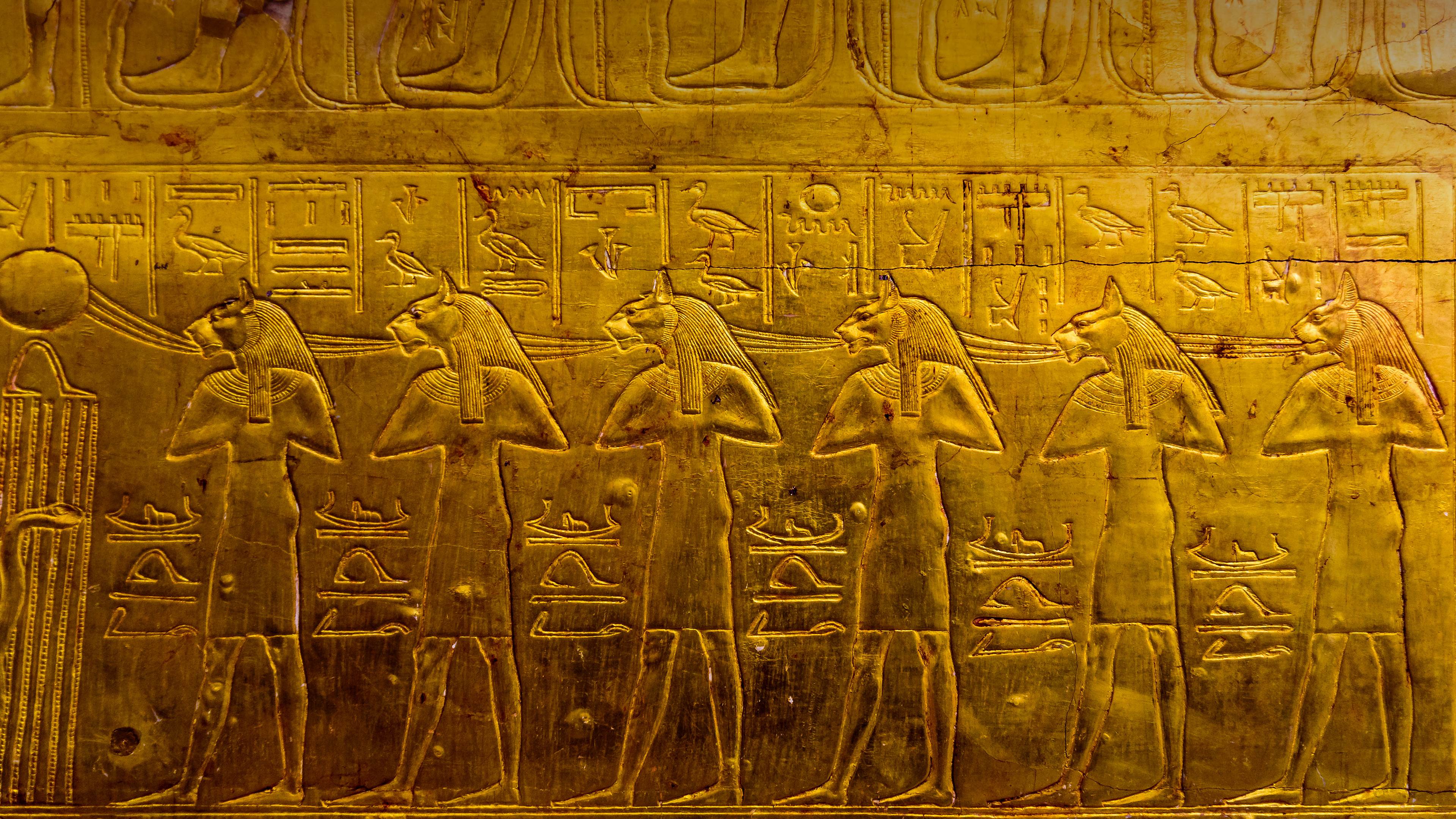 Darstellung von Gottheiten aus dem Grab des Tutanchamun im Ägyptischen Museum, Kairo, Ägypten