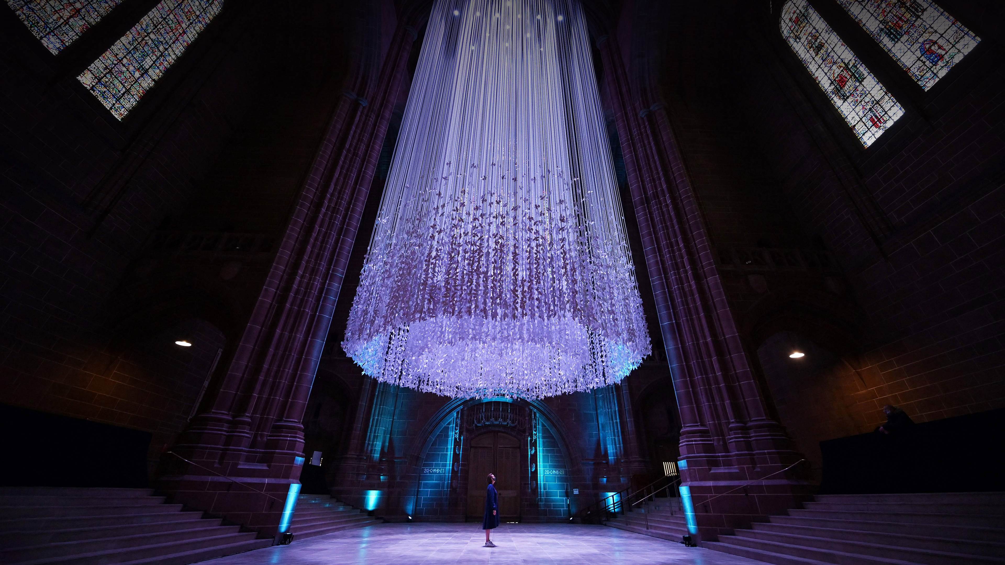 Installation „Peace Doves“ „Friedenstauben“ des Künstlers Peter Walker in der Liverpool Cathedral, Liverpool, England, Vereinigtes Königreich