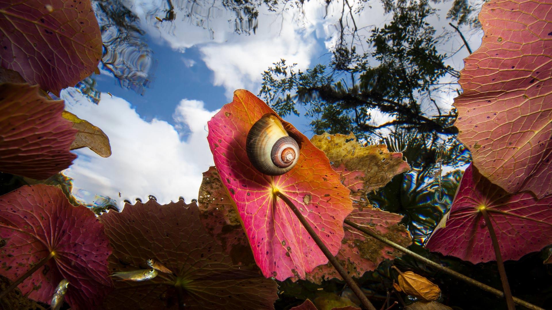 从Dos Ojos灰岩洞水中仰视的景色,墨西哥