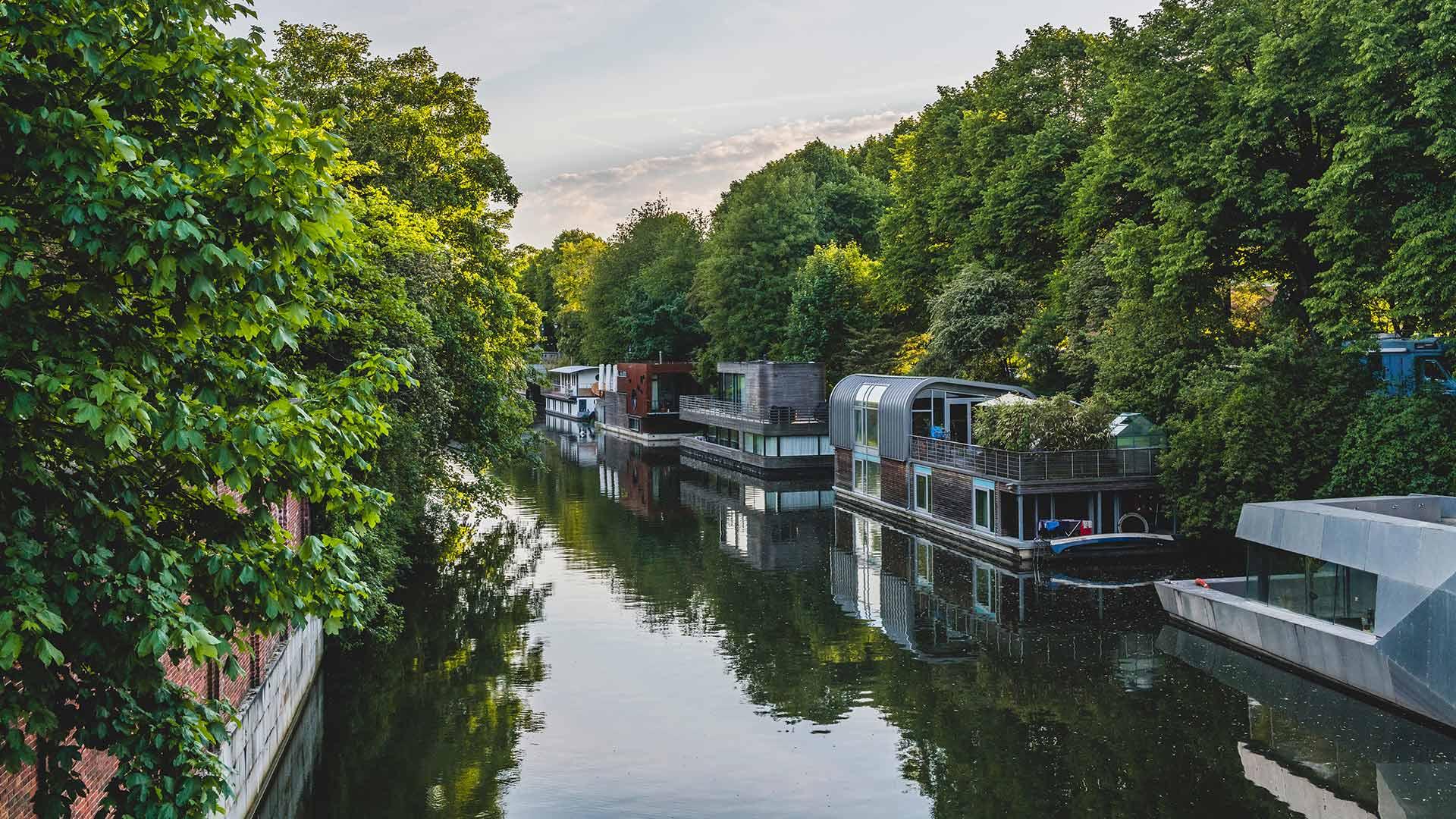 Hausboote auf dem Eilbekkanal, Hamburg © Kerstin Bittner/Offset Wohnen auf dem Wasser Hausboote auf dem Eilbekkanal, Hamburg