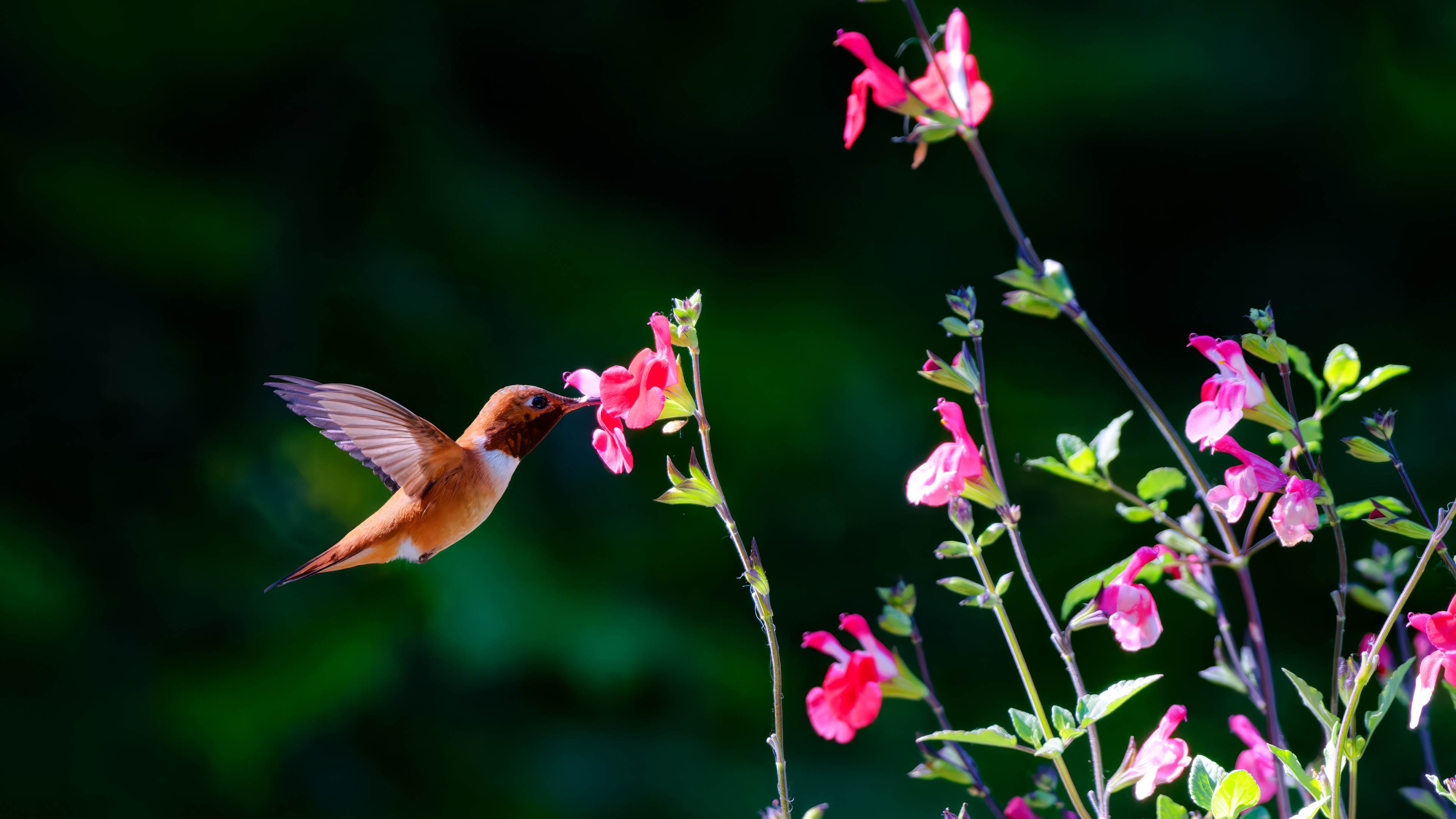 Rufous hummingbird, Salt Spring Island, British Columbia, Canada © Dave Hutchison Photography/Getty Images Nectar stopover Rufous hummingbird, Salt Spring Island, British Columbia, Canada