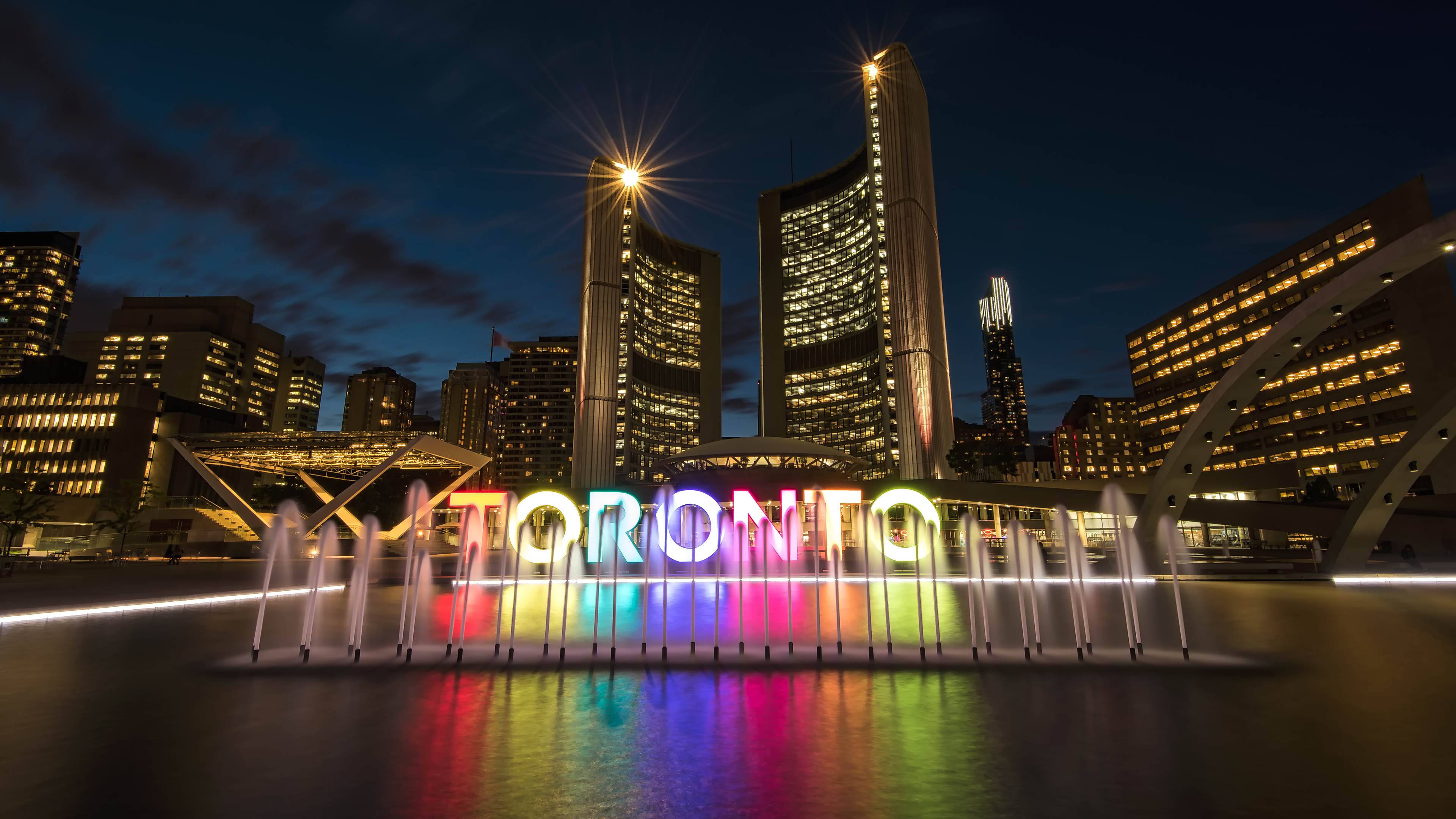 Toronto Sign, Nathan Phillips Square, Canada © Bruce Christie/Moment/Getty Images Illuminated streets, artistic streaks Toronto Sign, Nathan Phillips Square, Canada