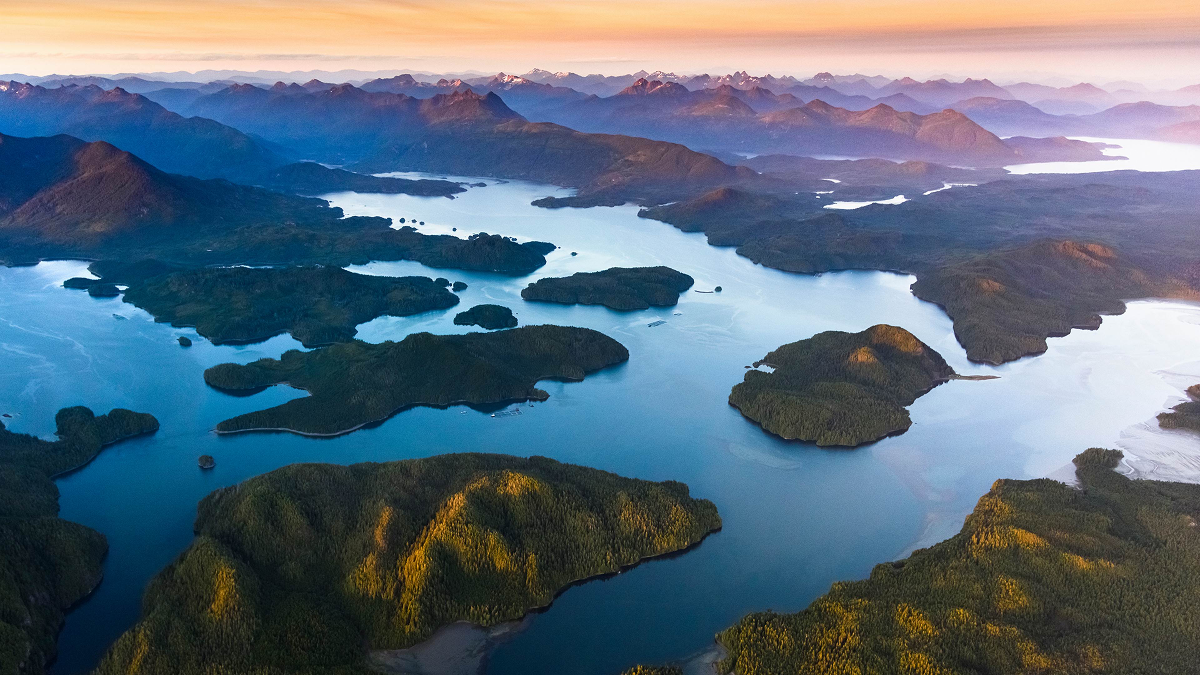Aerial view of Clayoquot Sound and the Pacific Rim National Park Reserve in British Columbia
