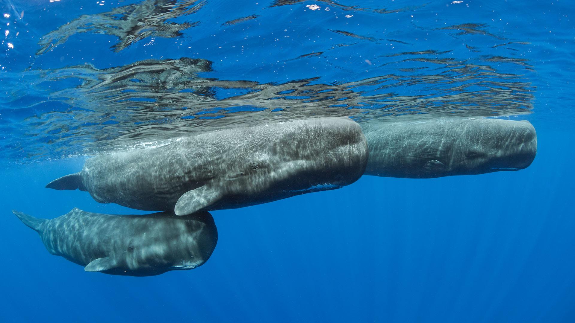 Sperm whale pod surfacing, Dominica © Franco Banfi/Minden Pictures Taking a breather Sperm whale pod surfacing, Dominica
