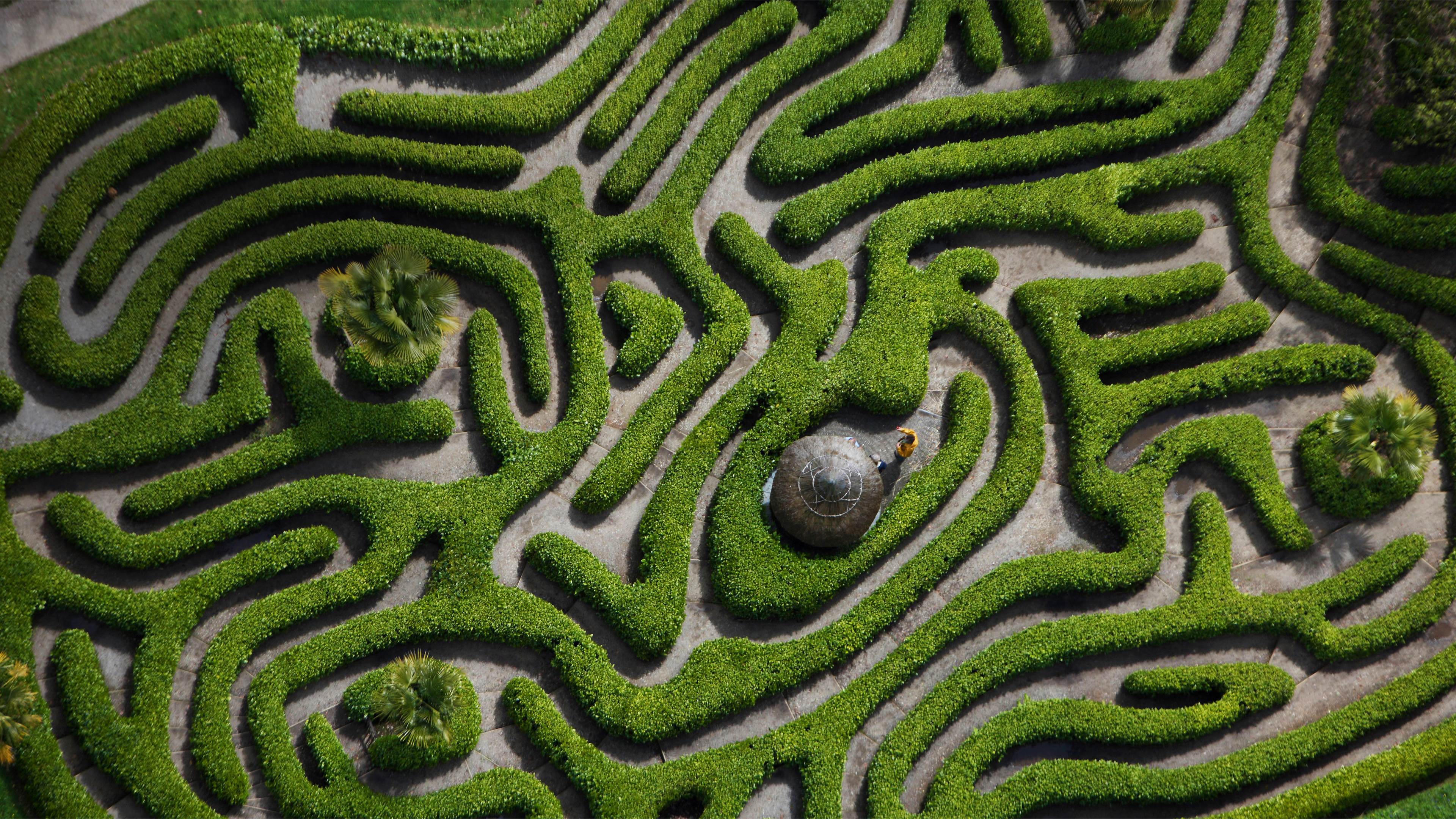 格伦德根花园的樱桃月桂树迷宫鸟瞰图,英国康沃尔 (© Richard Cooke/Alamy)