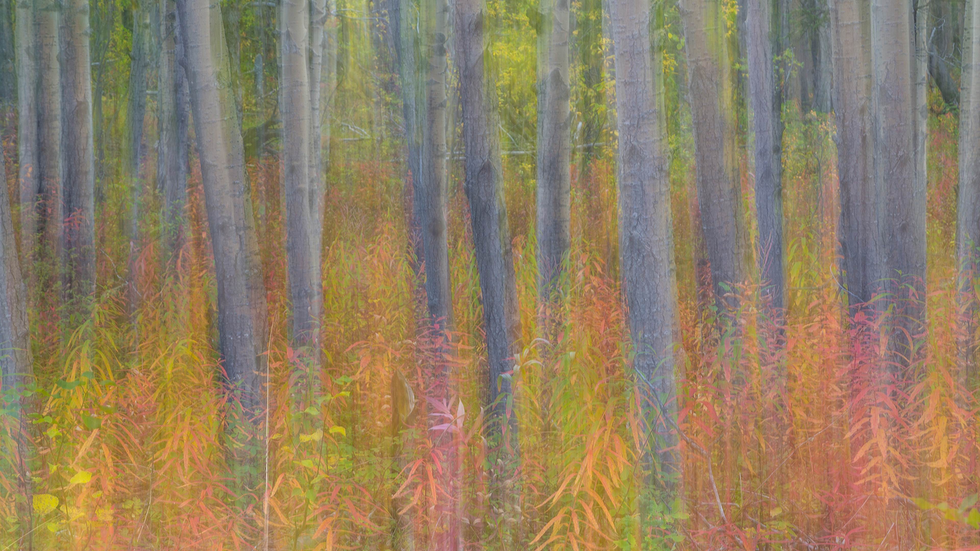 克鲁瓦尼国家公园中杨树的抽象动态模糊影像,育空 (© Don Paulson/Jaynes Gallery/Danita Delimont)