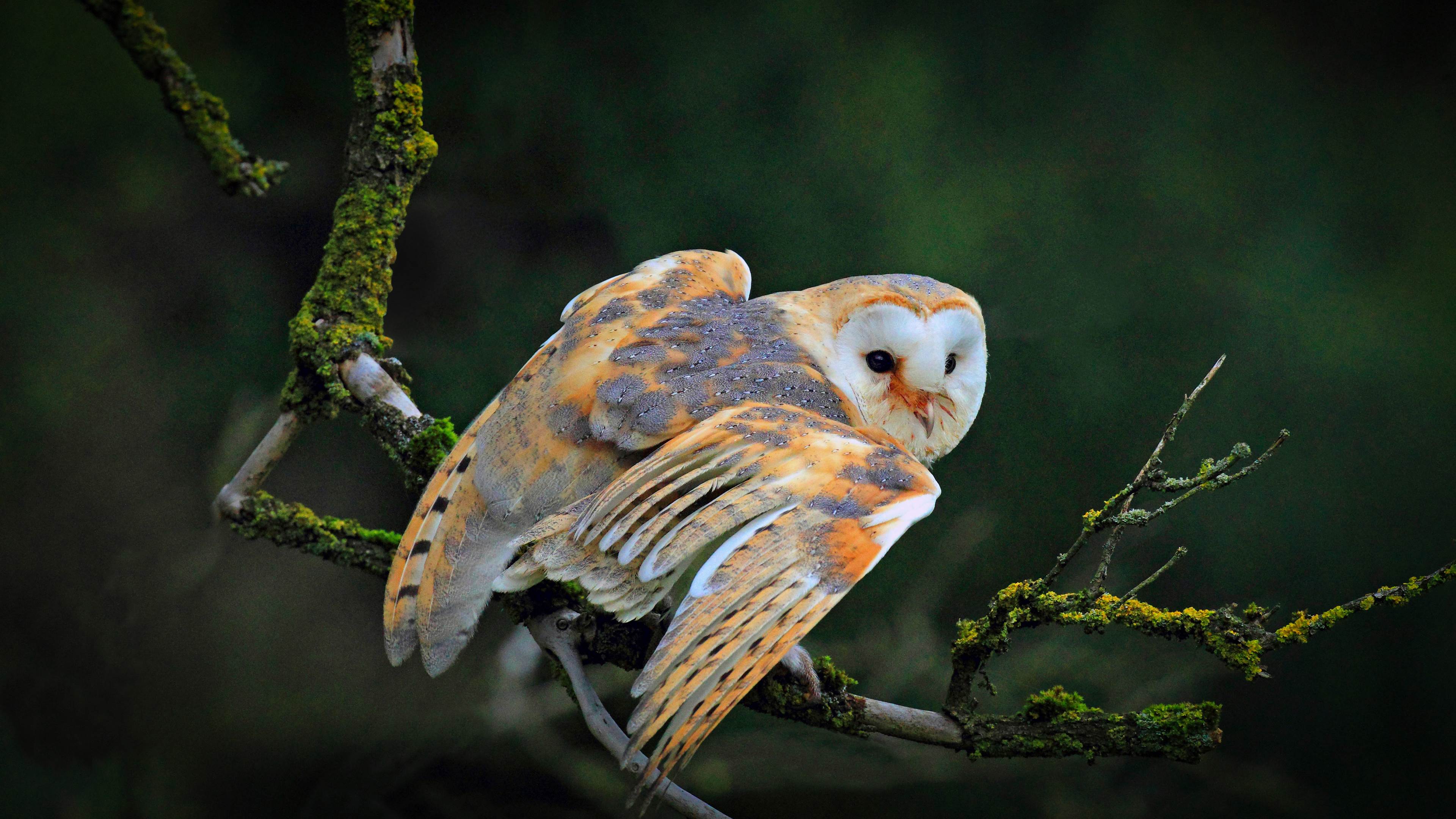 一只停在树枝上的仓鸮 (© blickwinkel/Alamy)