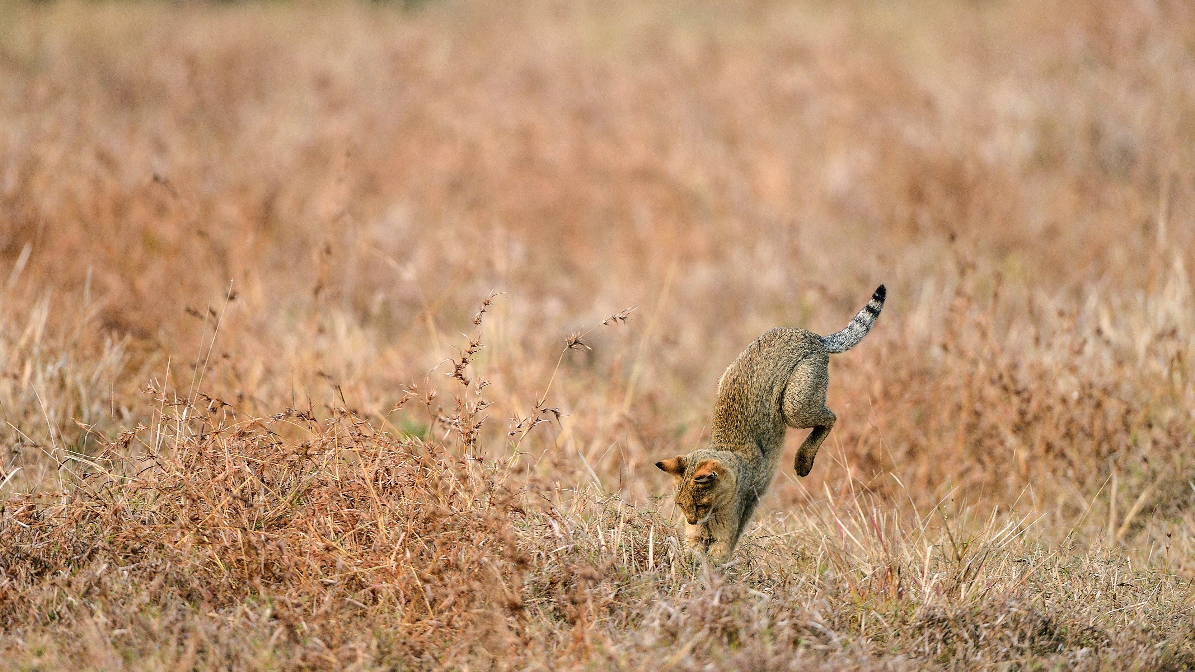 正在捕猎的丛林猫,印度 (© Lila/Alamy)