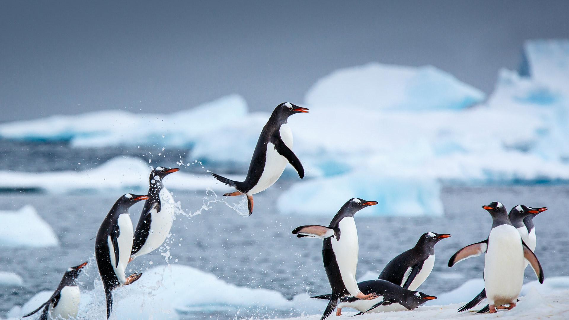 南极丹科岛附近的巴布亚企鹅 (© David Merron/Getty Images)
