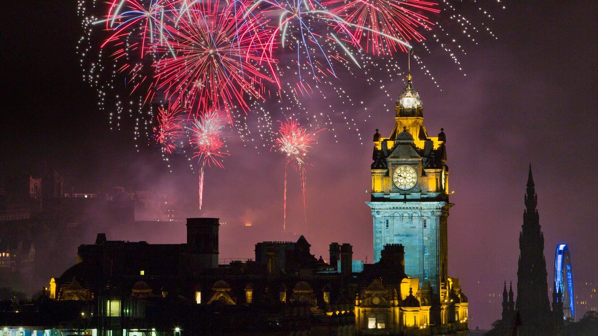 节日期间爱丁堡城堡上空的烟花 (© Kevin Carr/Getty Images)