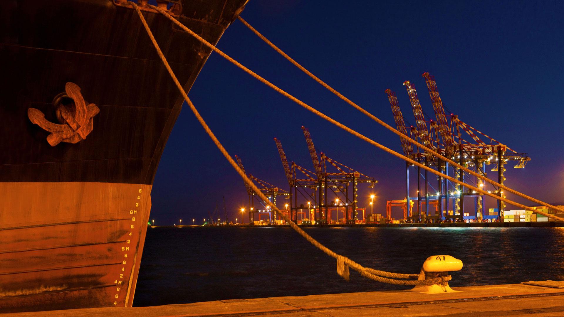 夜色下停靠在开普敦港口的轮船,南非开普敦 (© Zero Creatives/Science Photo Library)