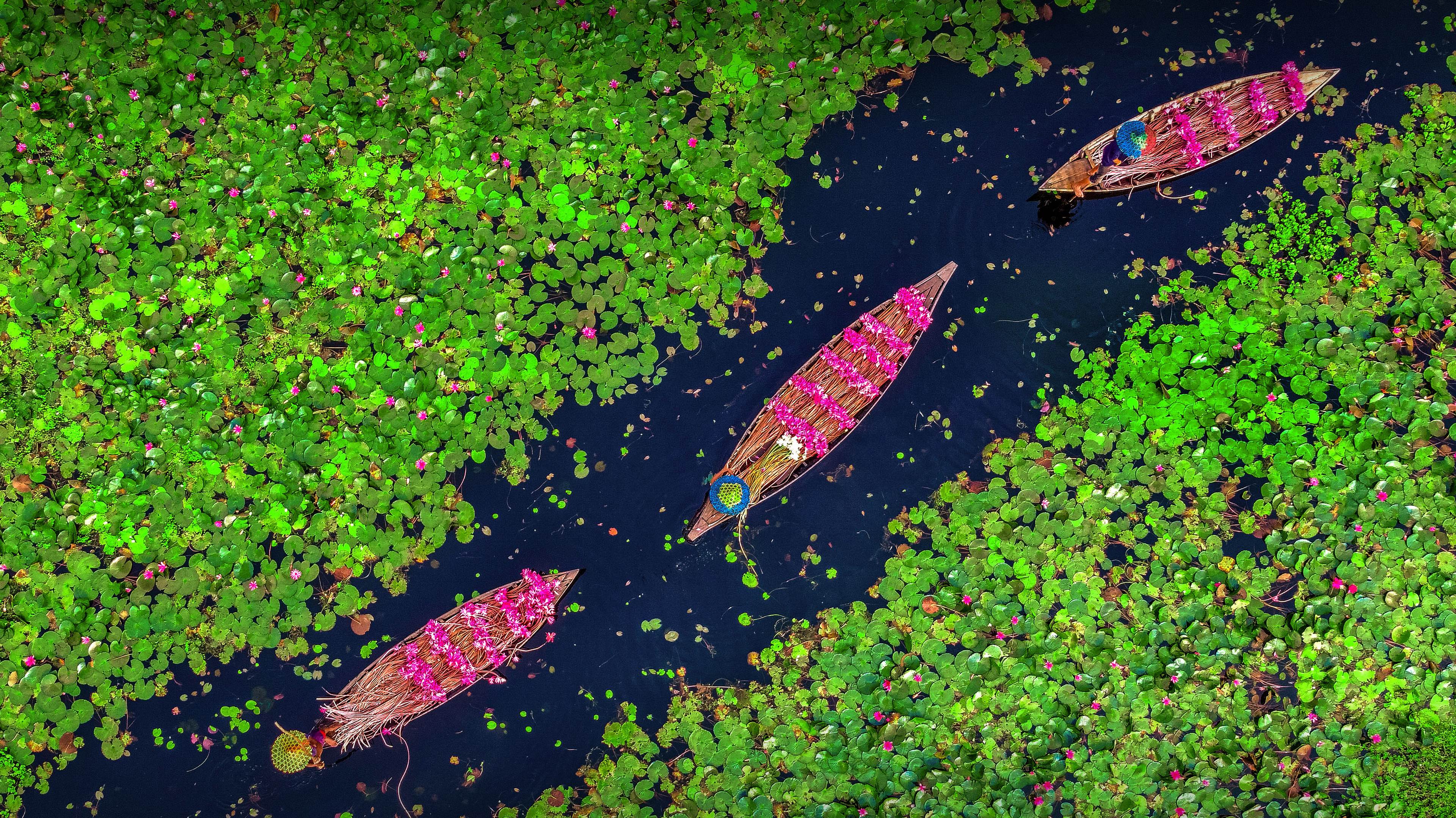 Farmers collecting water lilies in the Satla marshland near Bagdha, Barisal, Bangladesh (© Mustasinur Rahman Alvi/Future Publishing via Getty Images)