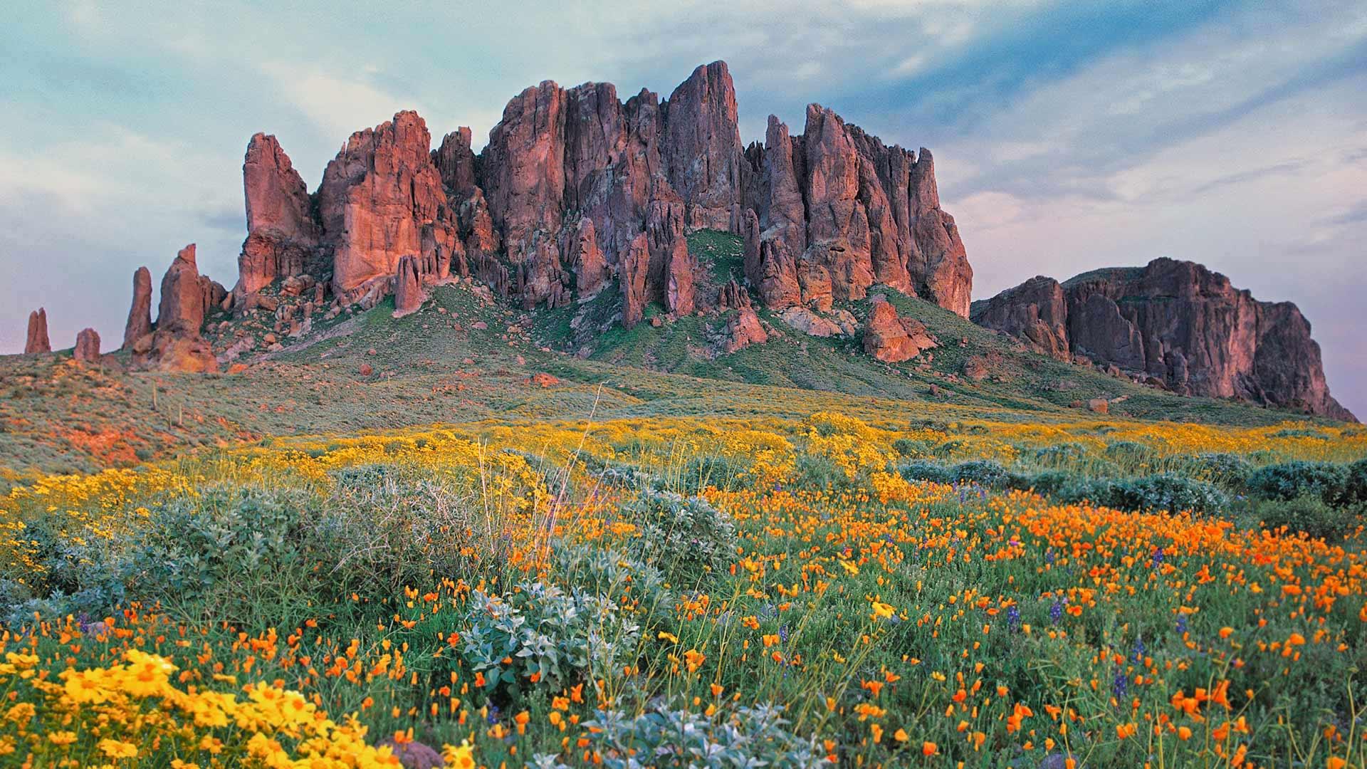 迷失荷兰人国家公园里盛开的野花,亚利桑那