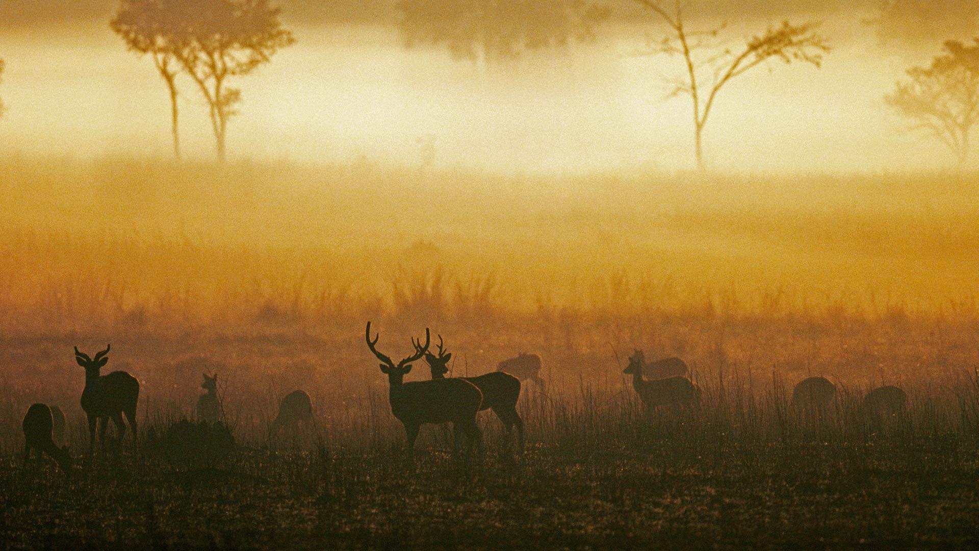 黎明时分薄雾草原上的白斑鹿,印度中央邦坎哈国家公园 © Pete Oxford/Minden Pictures 黎明时分薄雾草原上的白斑鹿,印度中央邦坎哈国家公园 公园 国家 印度 草原 时分 薄雾 黎明 白斑 中央邦 坎哈