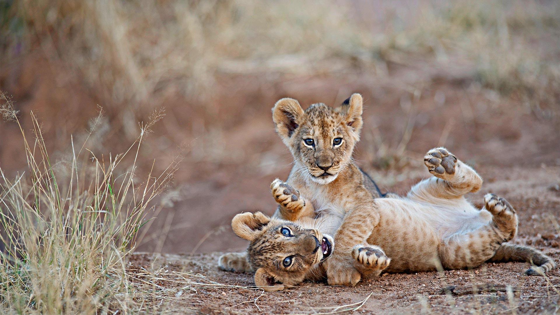 桑布鲁国家公园里摔跤的狮子幼崽,肯尼亚