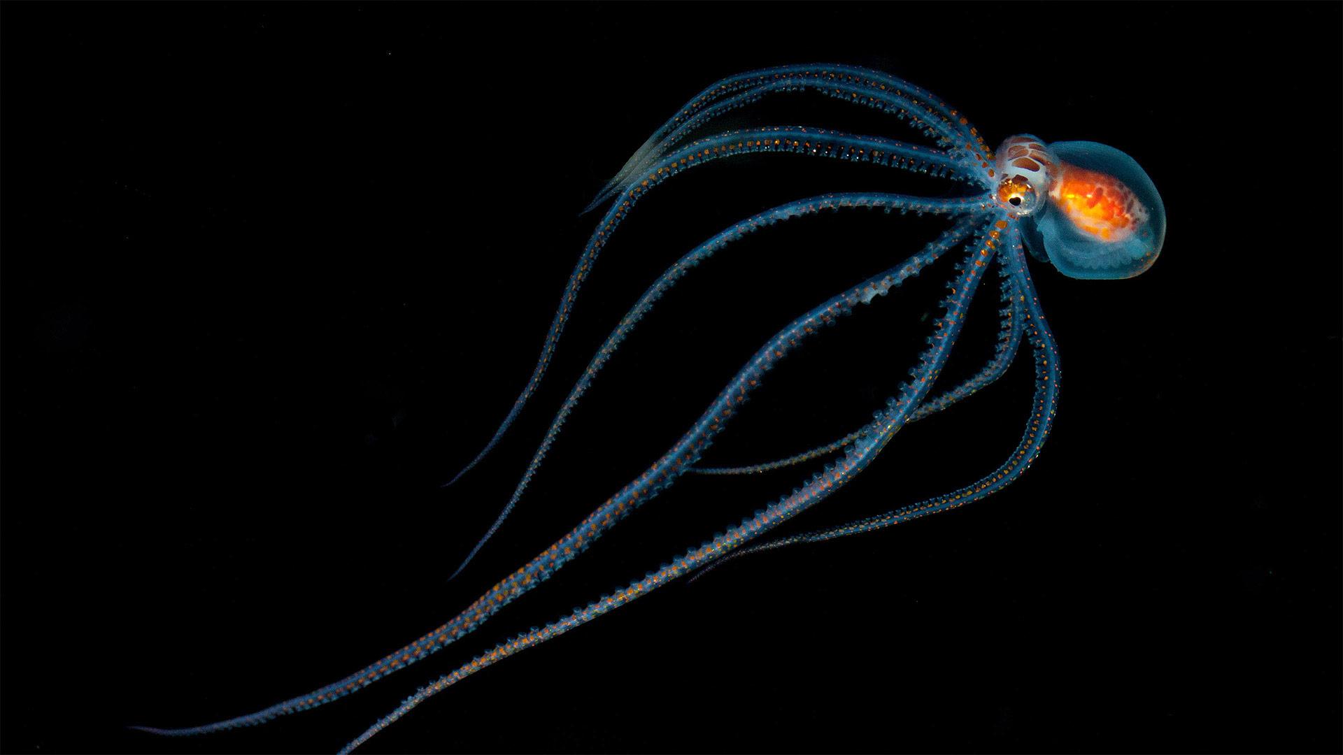 夜间潜水时发现的章鱼,夏威夷科纳附近