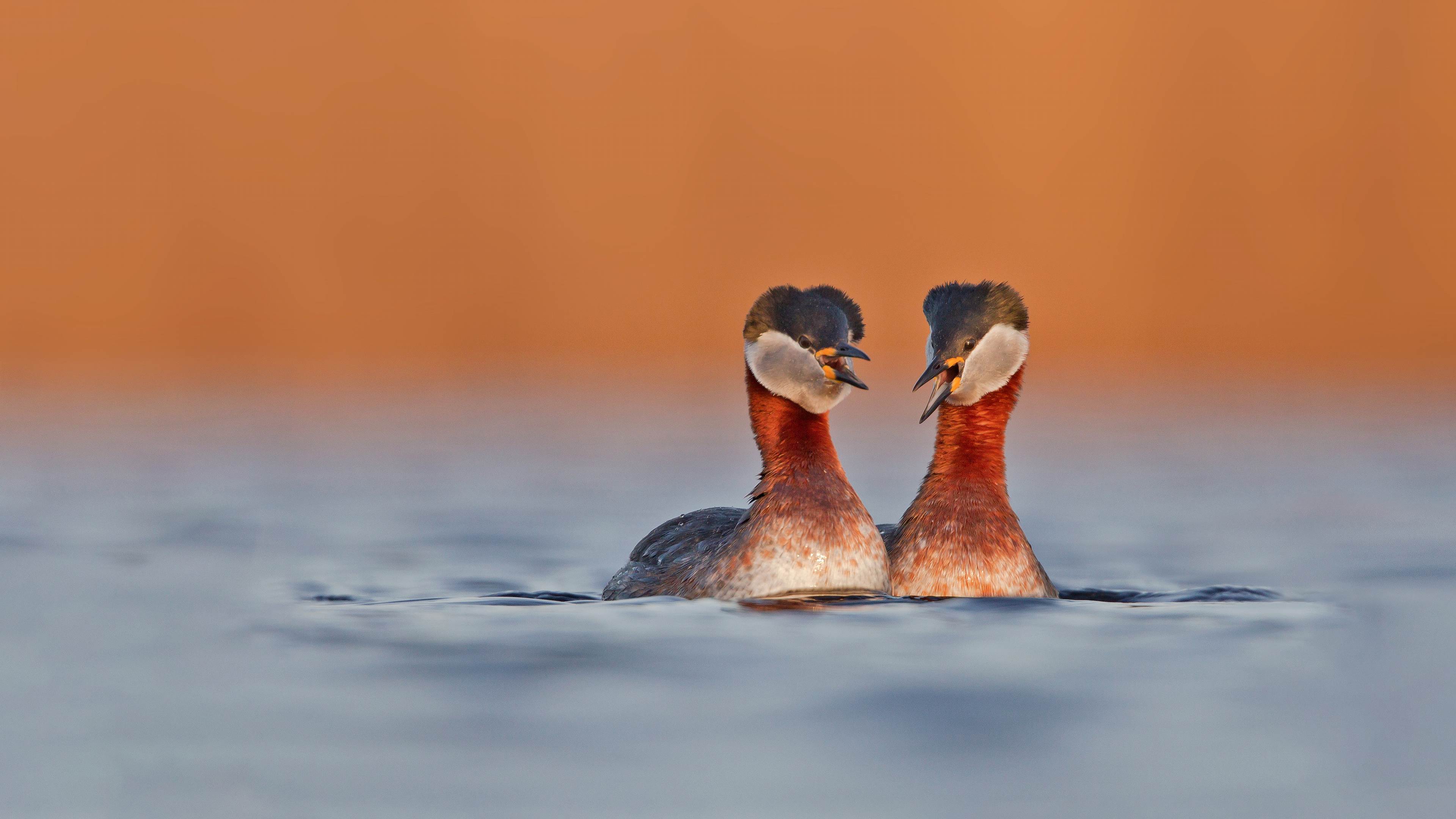 Due esemplari di svasso collorosso in Germania © Edo van Uchelen/Minden Pictures L'uccello dalla doppia personalità Due esemplari di svasso collorosso in Germania