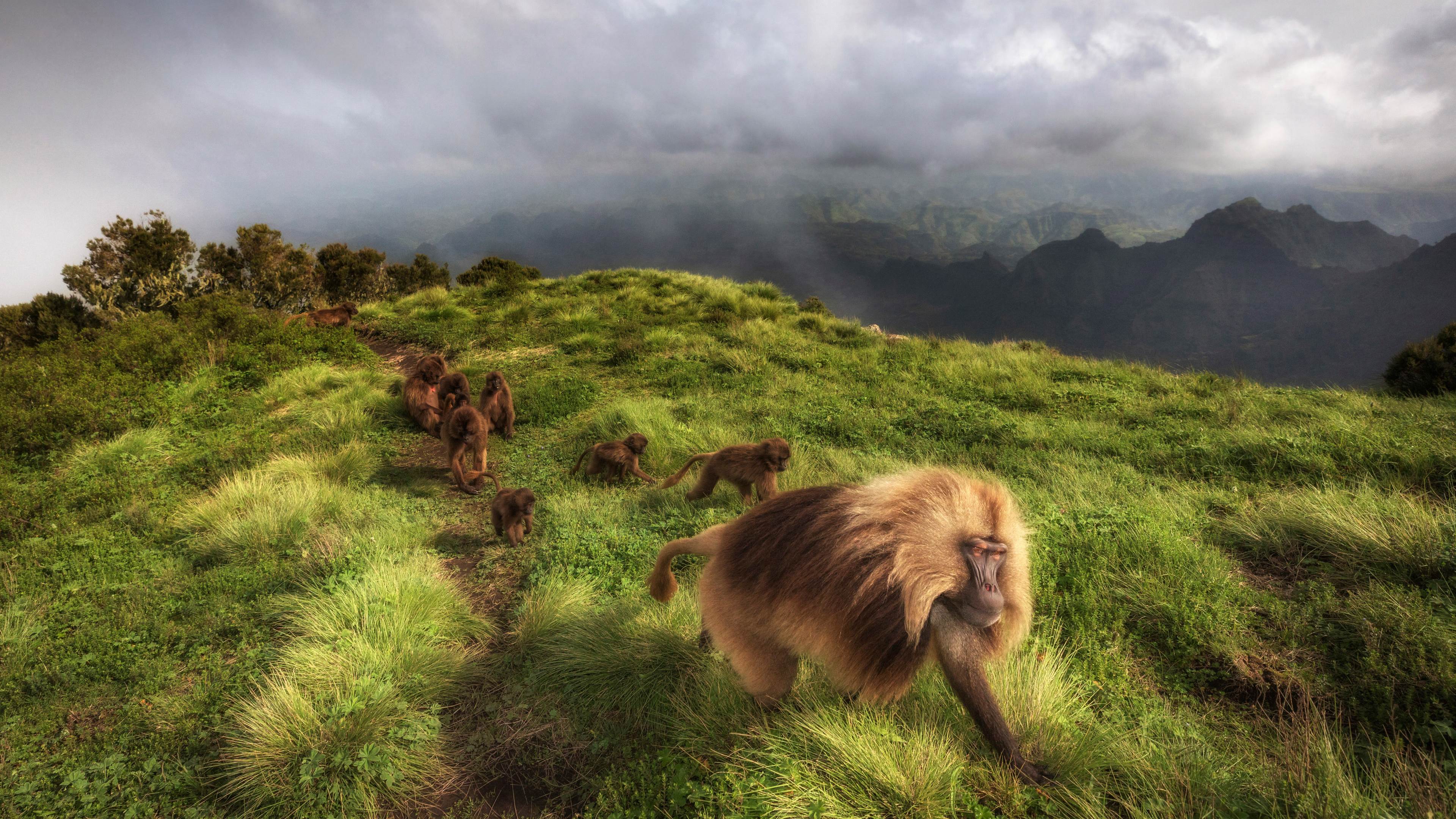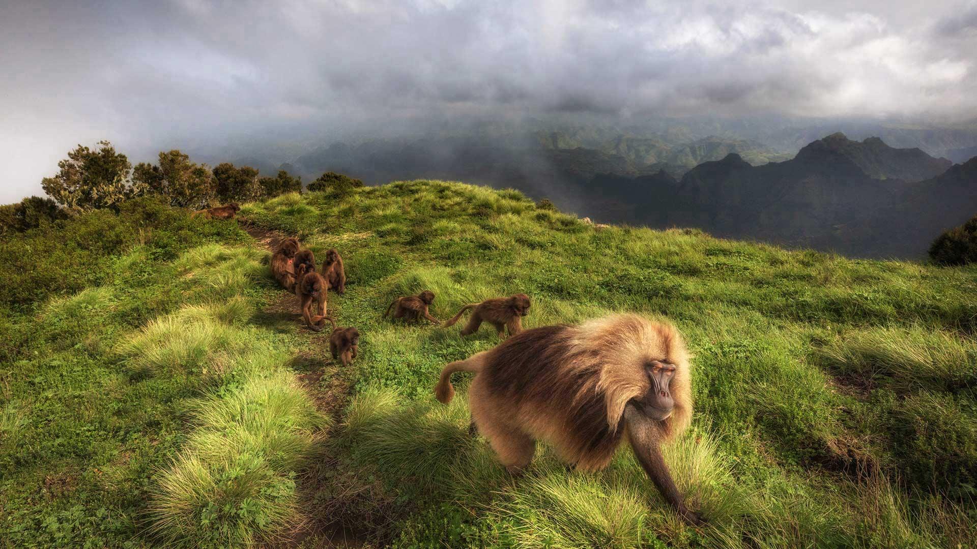瑟门山国家公园里的狮尾狒狒,埃塞俄比亚北部