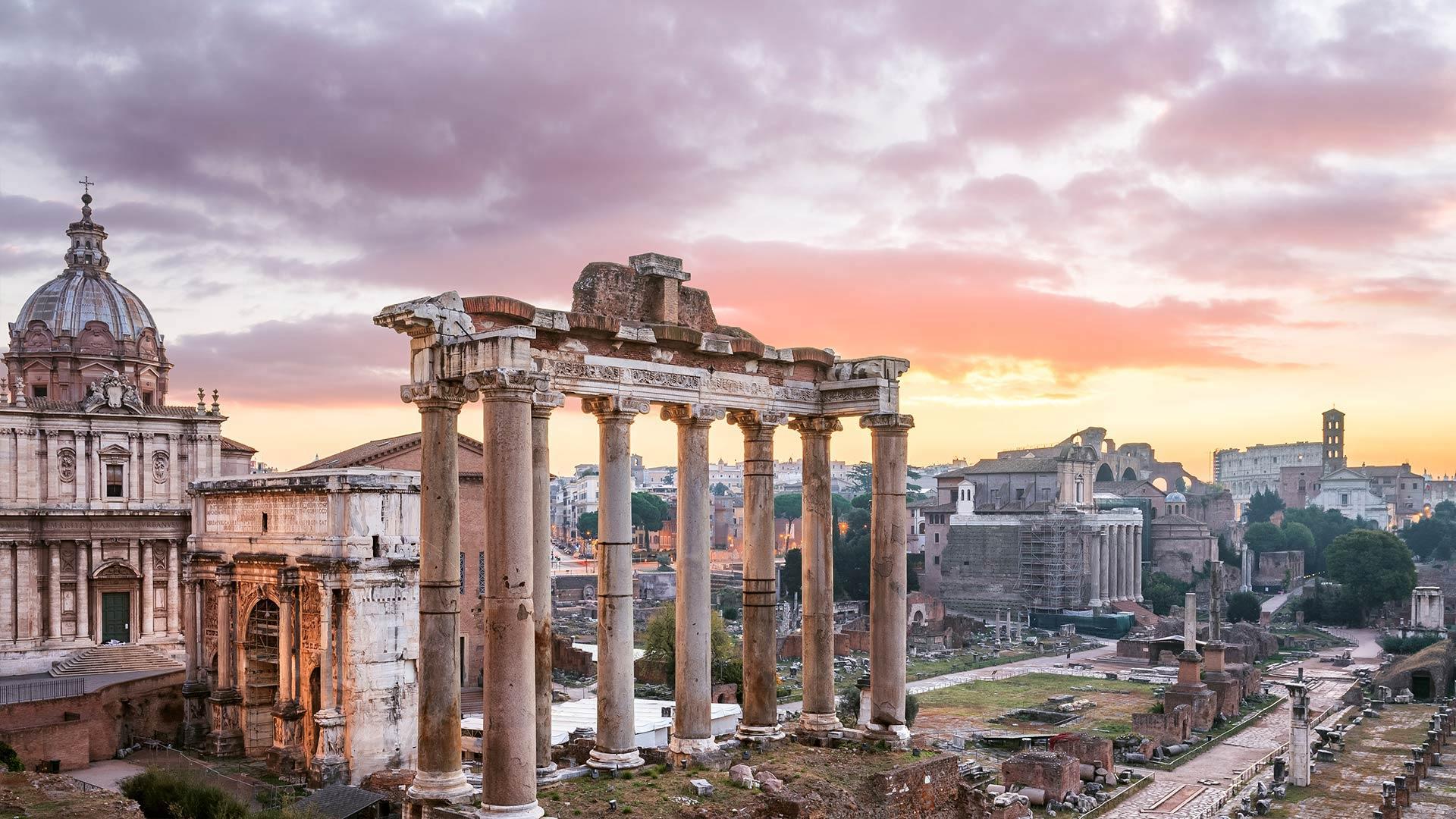 古罗马广场上的萨图尔诺农神庙,意大利罗马